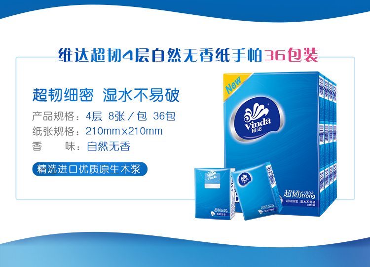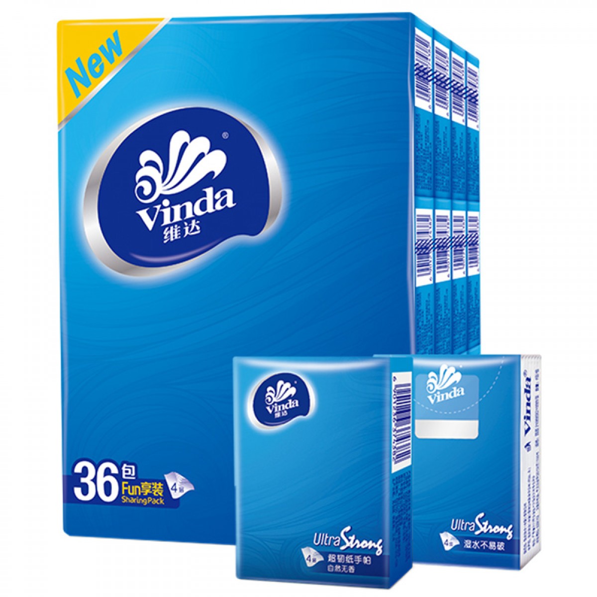 商品名称:维达 超韧手帕纸4层8张36包卫生纸巾 可湿水面巾纸