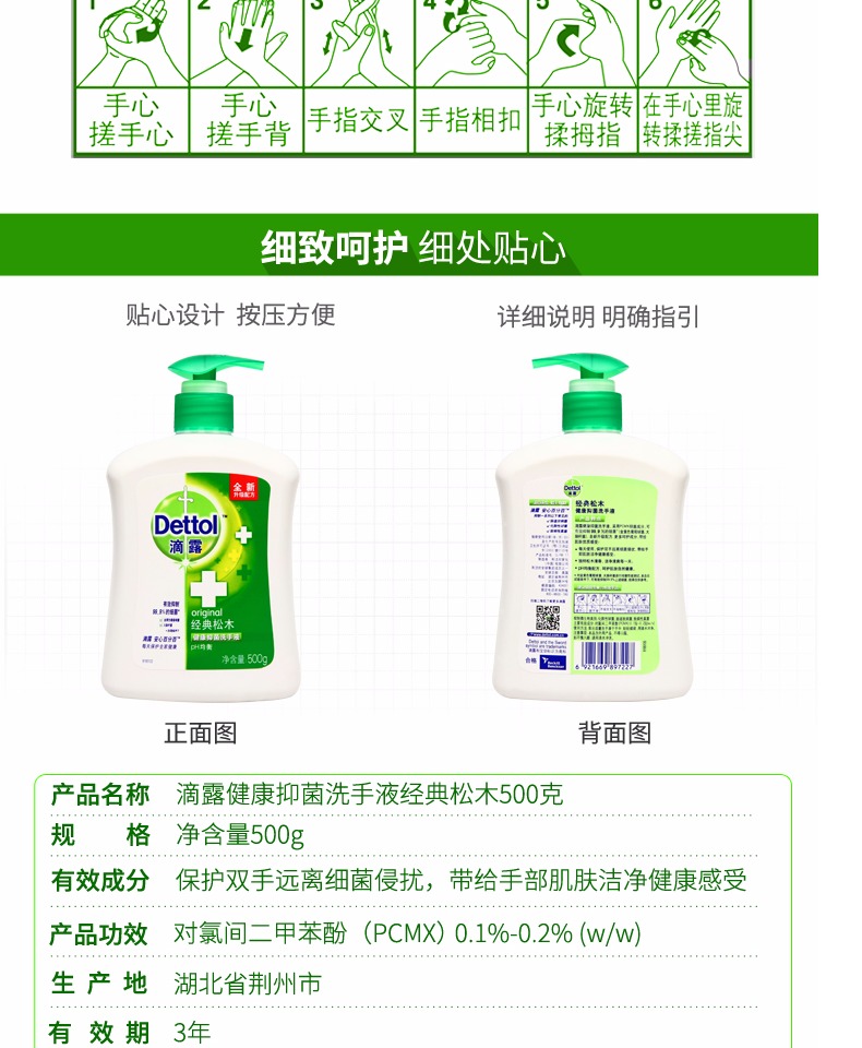 商品名称:滴露 洗手液健康抑菌洗手液经典松木500g