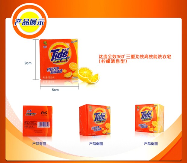 - 商品名称:汰渍全效360度洗衣皂(柠檬清香)126g*4块