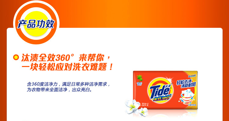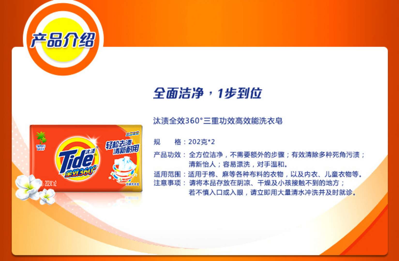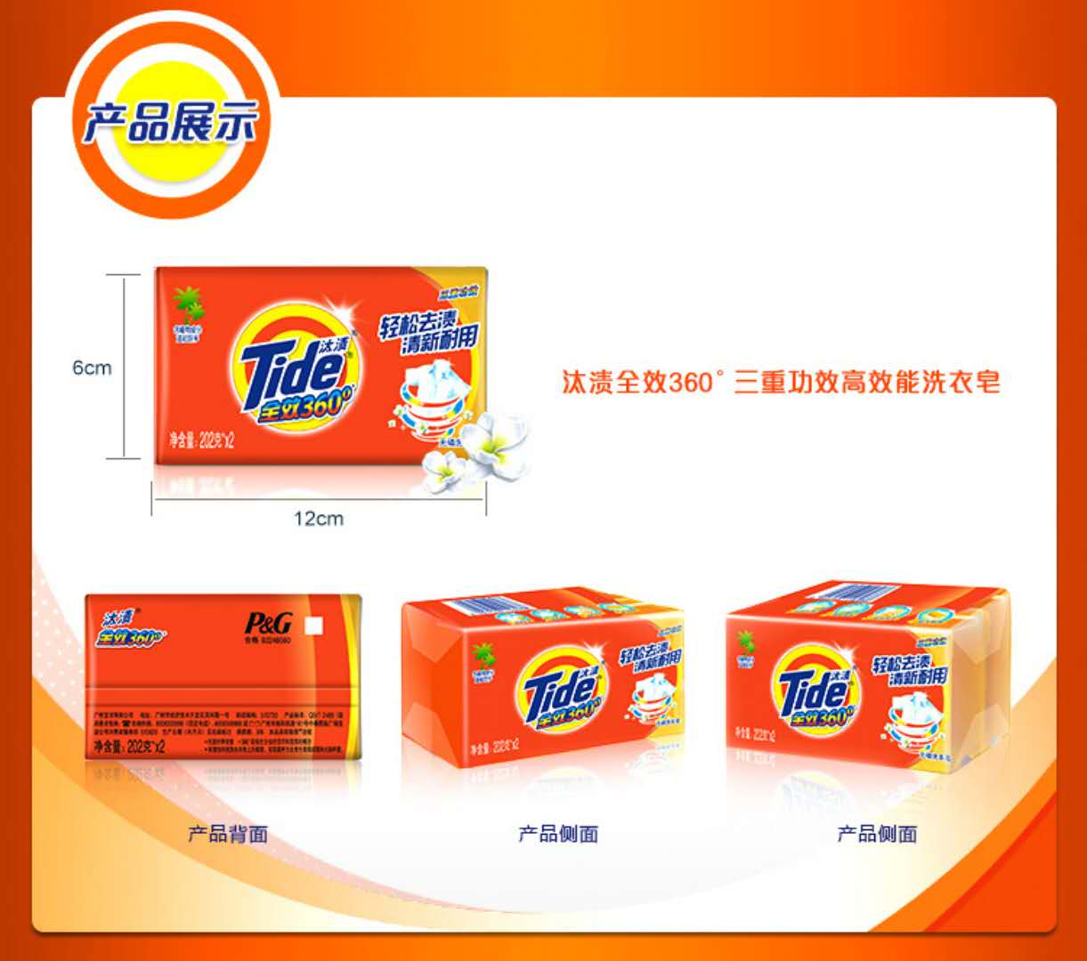 商品名称:汰渍洗衣皂全效360度202克X4块透明皂有效去渍