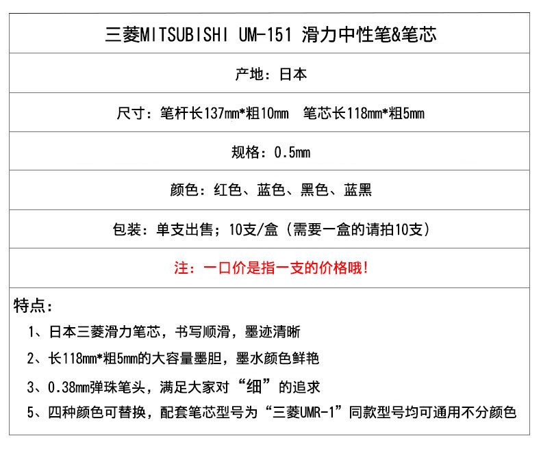 商品名称:三菱 UM-151彩色速干水笔细耐中性0.38mm财务笔签字笔学生用