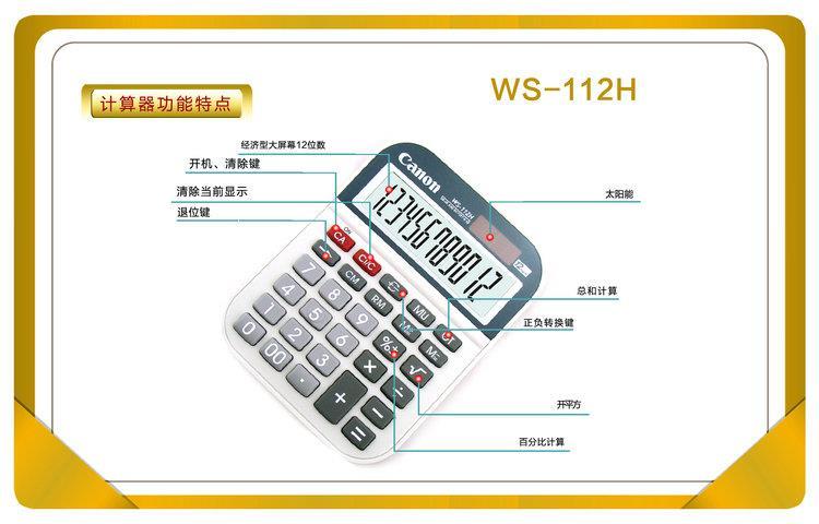 商品名称:佳能/Canon WS-112G财务会计计算器多功能办公商务型计算机