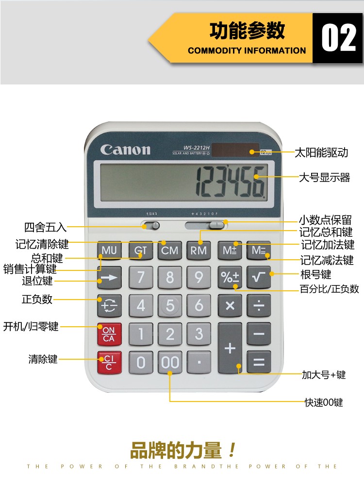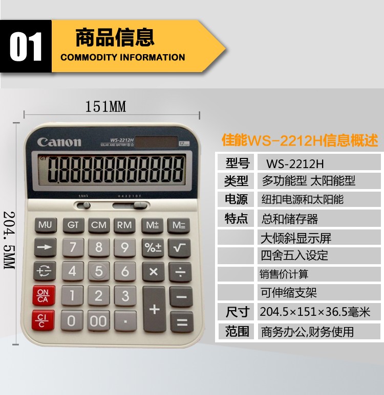 商品名称:佳能/Canon WS-2212H台式 12位数显示 办公财务会计适用