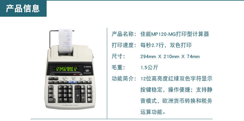 商品名称:佳能/Canon 打印式计算器MP-120MG 打印加数器MP120-MG计算机