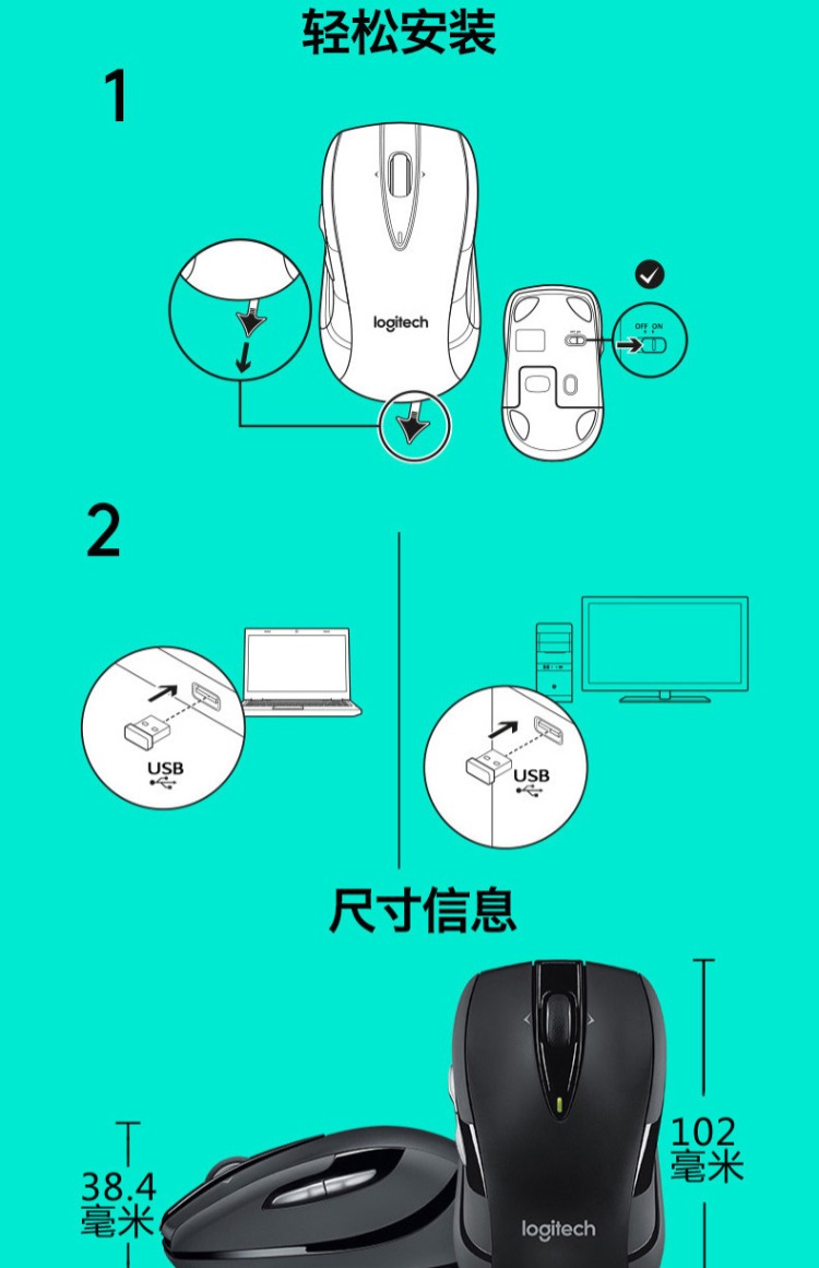 商品名称:罗技/Logitech 无线激光鼠标光电智能笔记本台式电脑苹果办公游戏鼠标省电通用m590 M546/M545