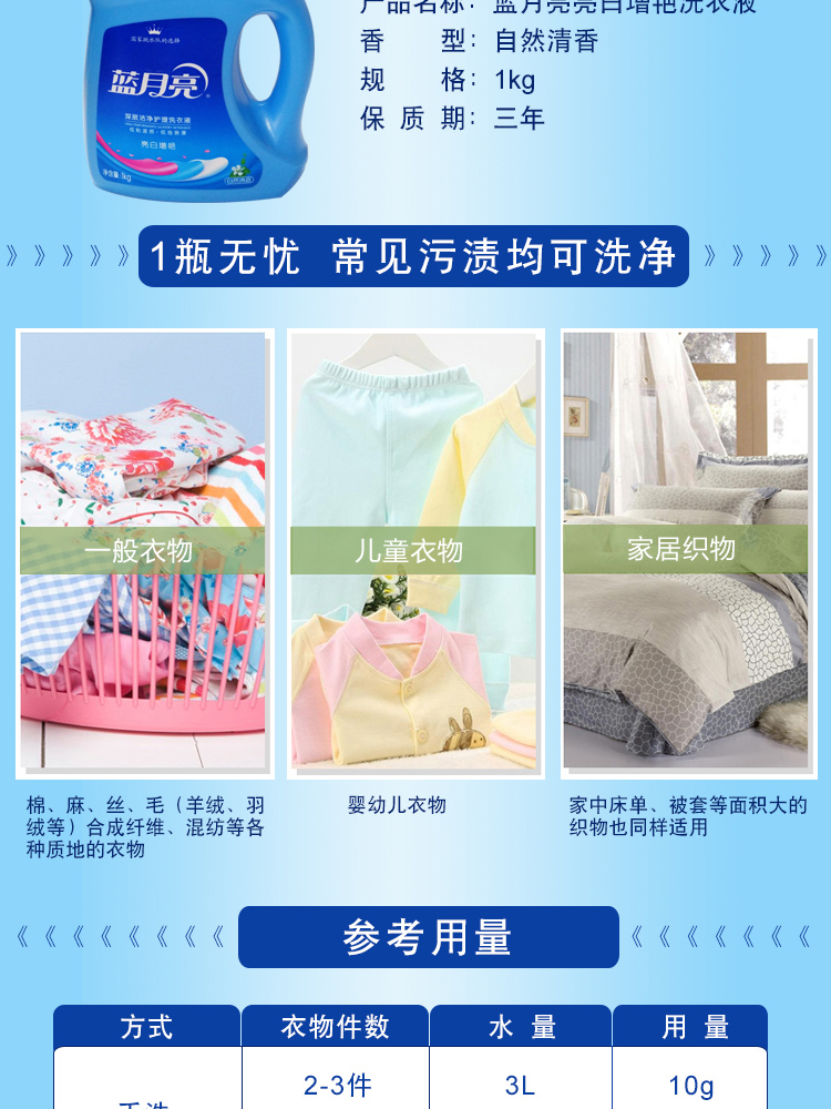 商品名称:蓝月亮 1kg瓶装洗衣液自然香亮白增艳机洗手洗适用