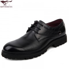 七匹狼 男鞋头层牛皮轻质鞋底男士系带商务休闲大头皮鞋子