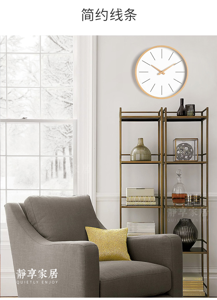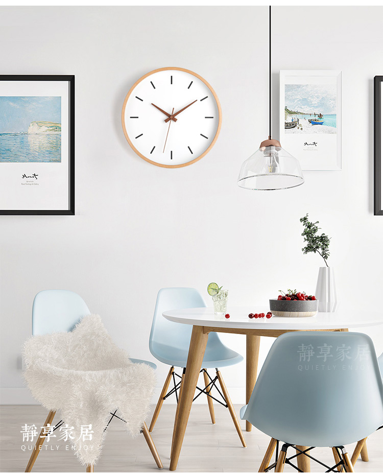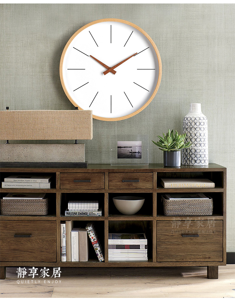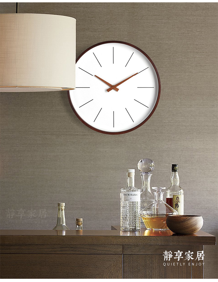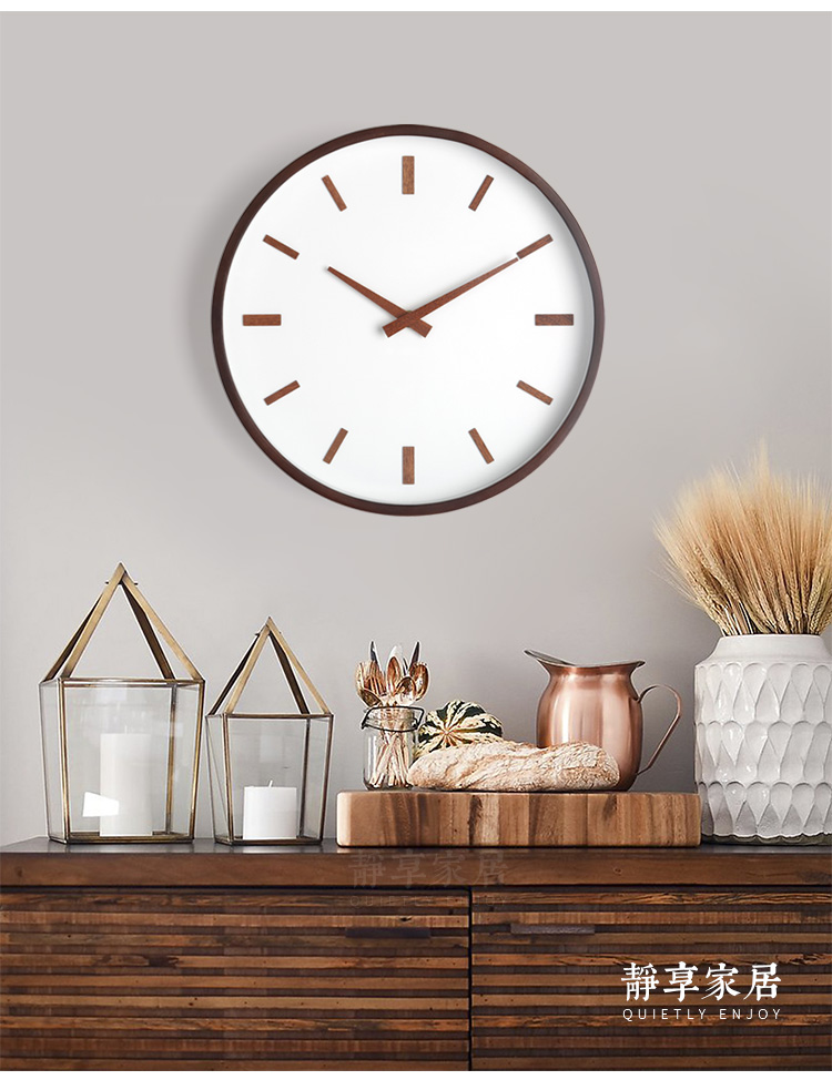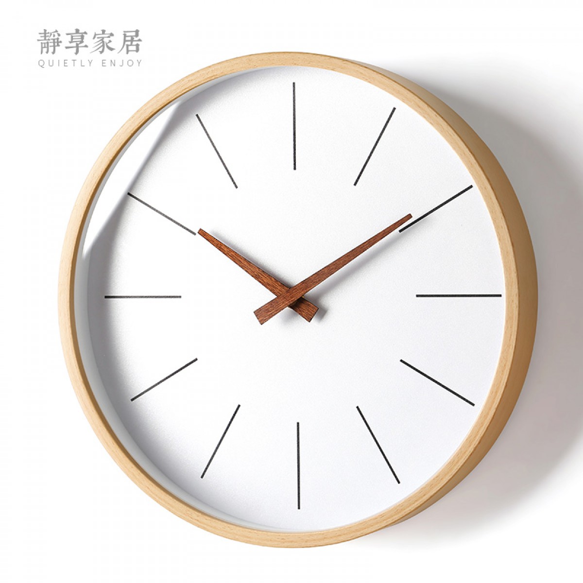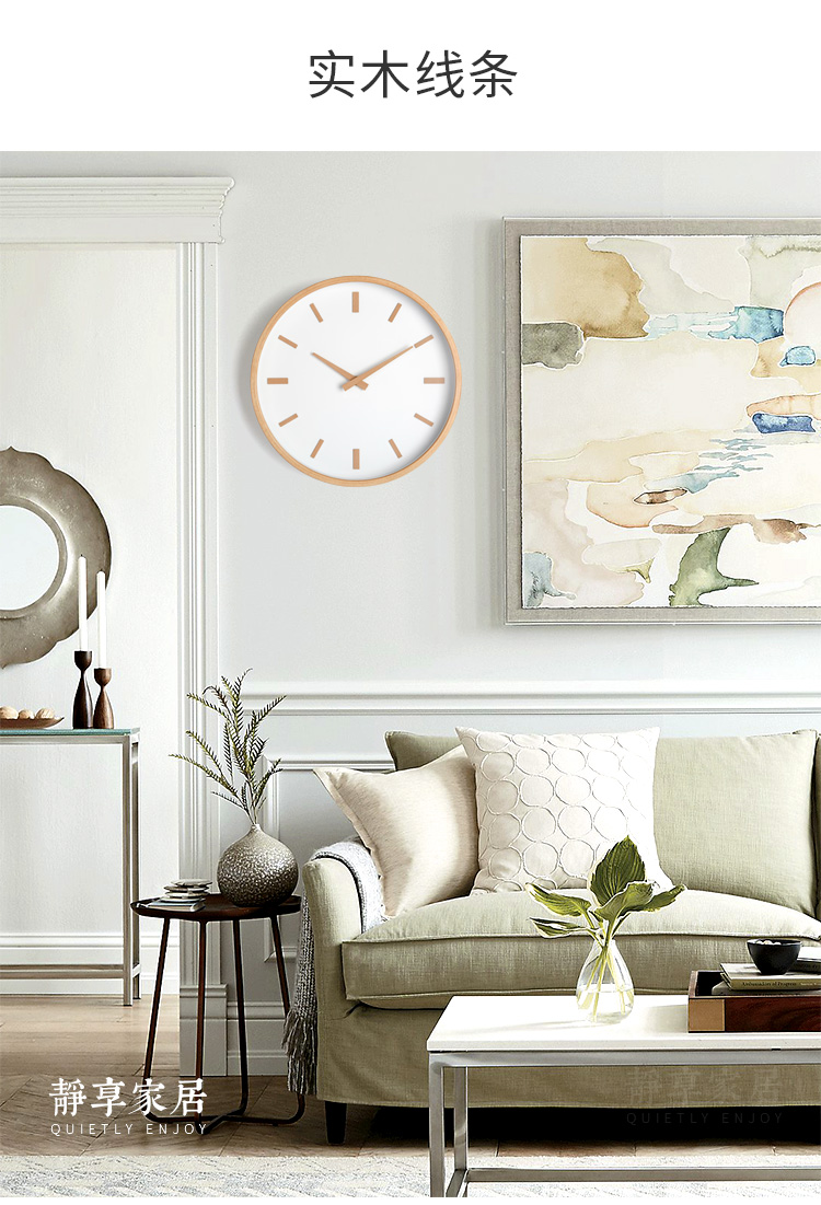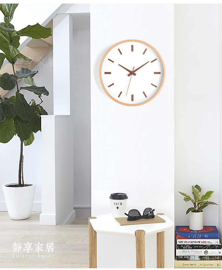 商品名称:静享家居 北欧现代简约静音挂钟客厅大厅办公室家用木质挂表大码石英钟圆形