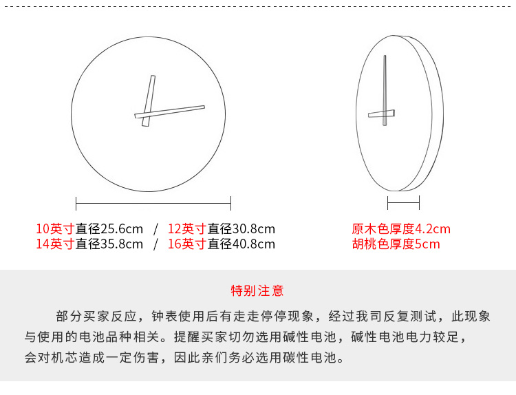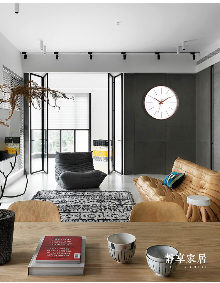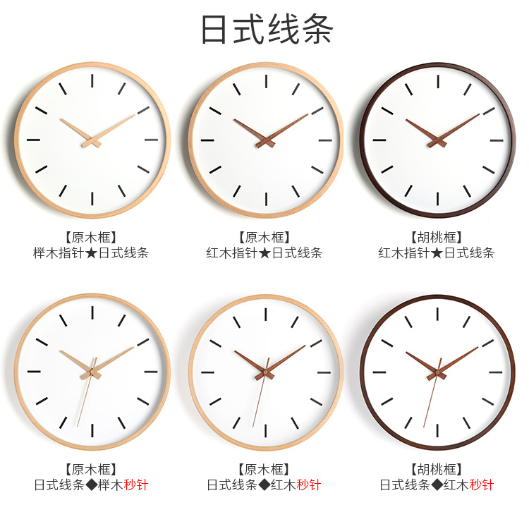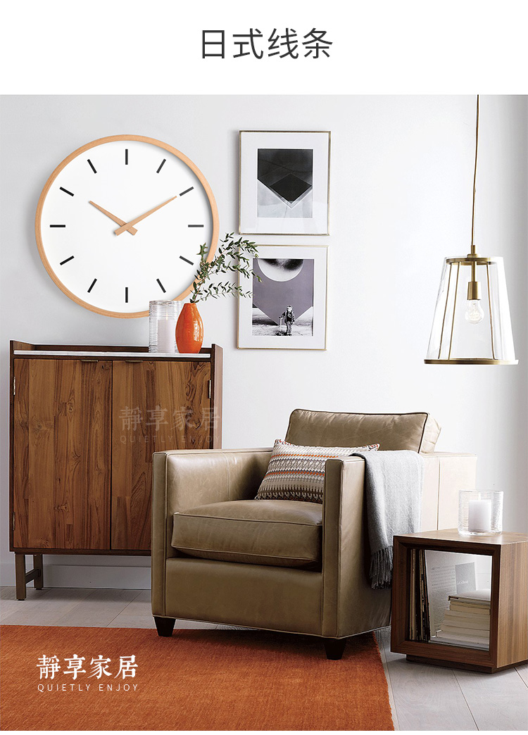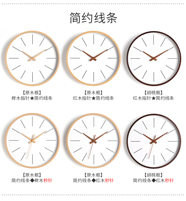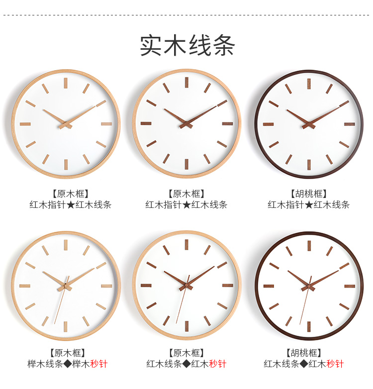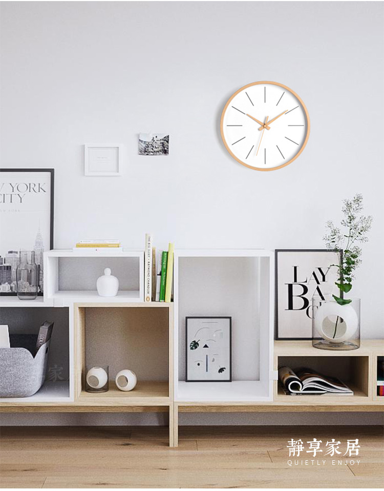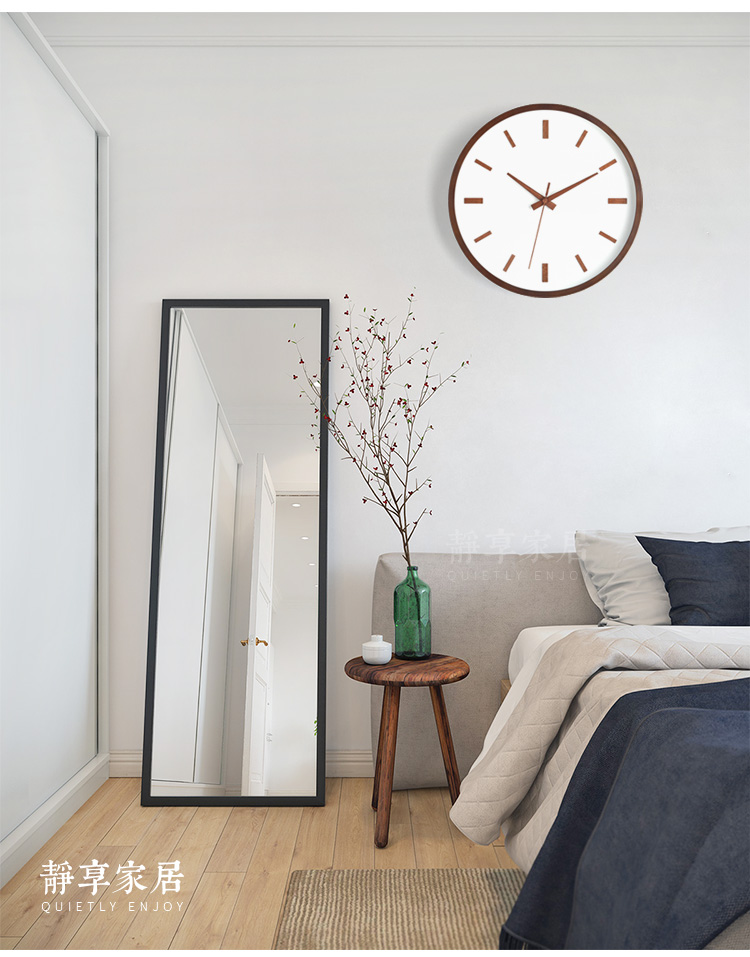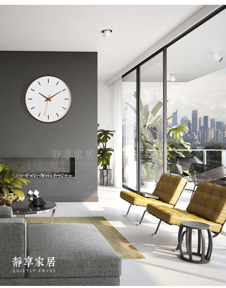 商品名称:静享家居 北欧现代简约静音挂钟客厅大厅办公室家用木质挂表大码石英钟圆形