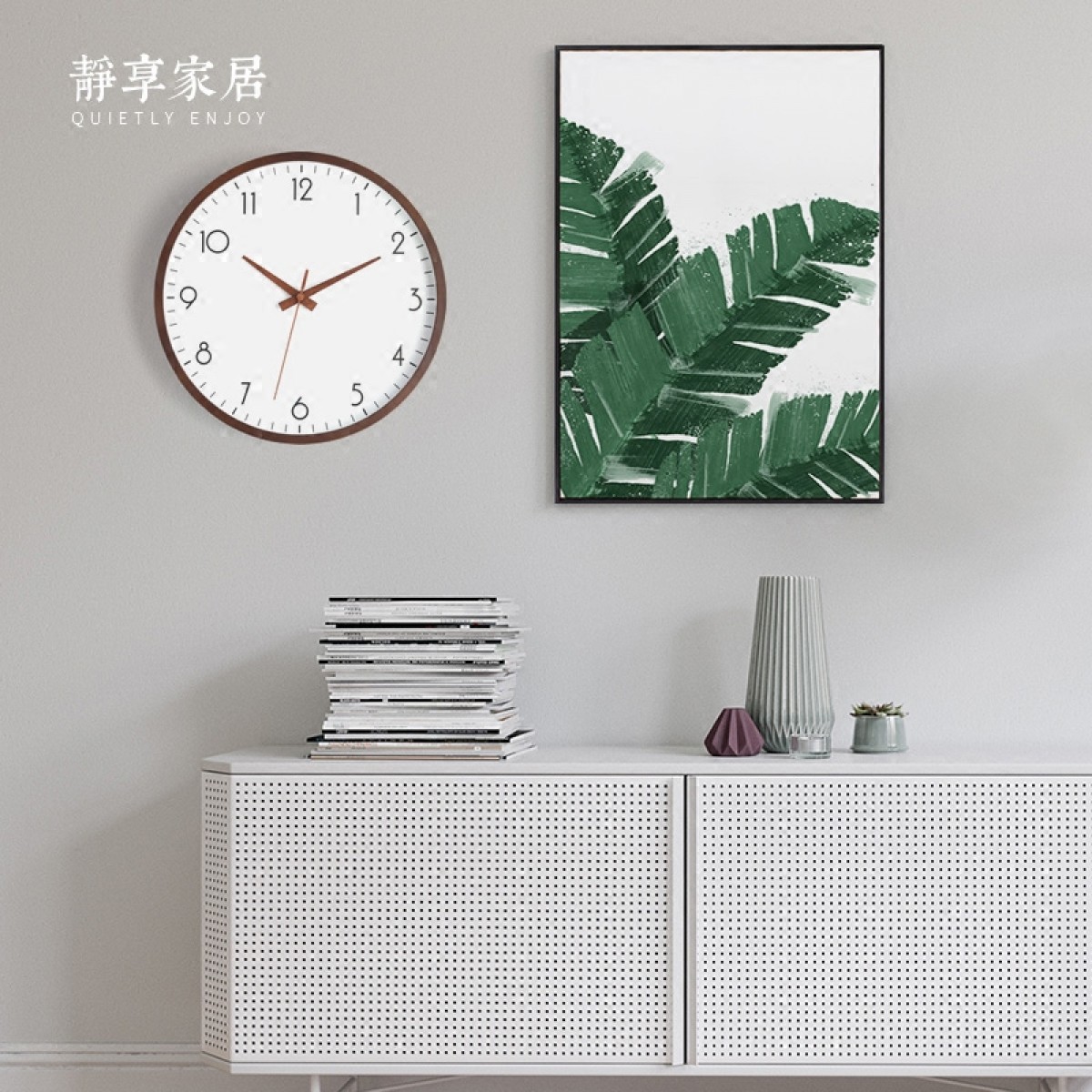 商品名称:静享家居 北欧挂钟现代简约静音时尚创意客厅实木挂表圆形石英钟表木钟