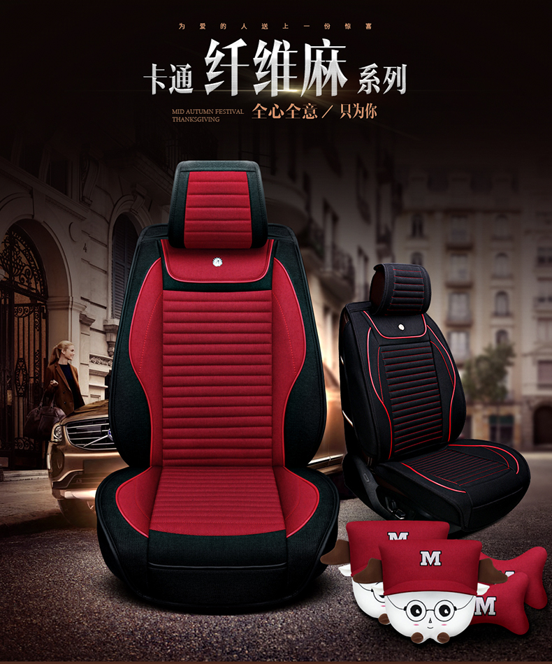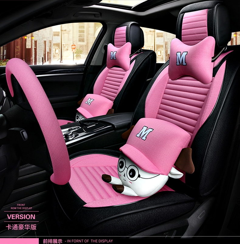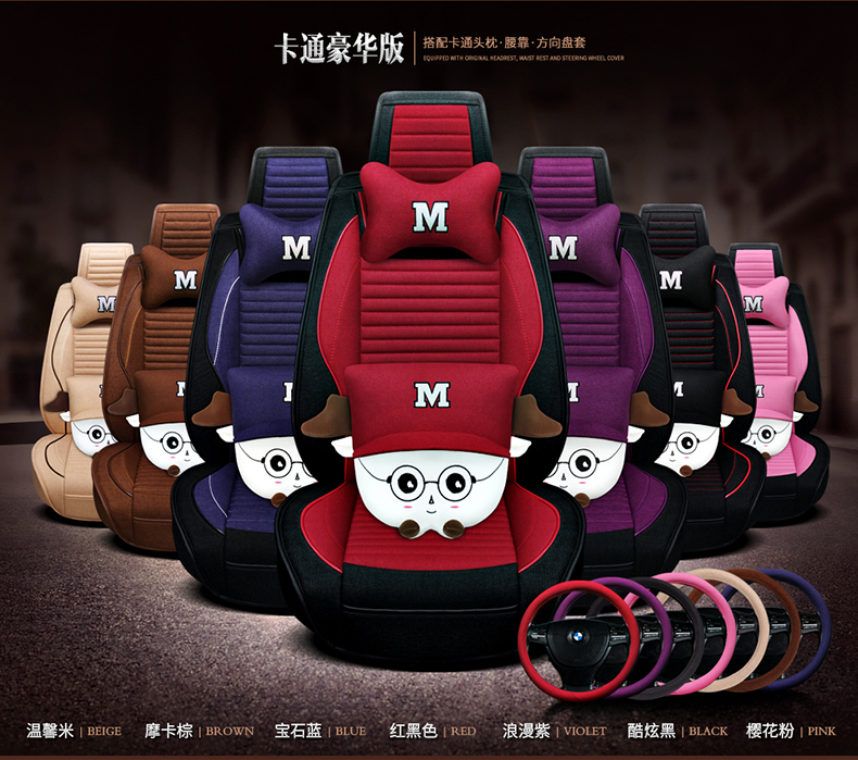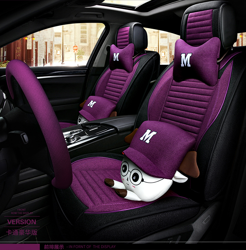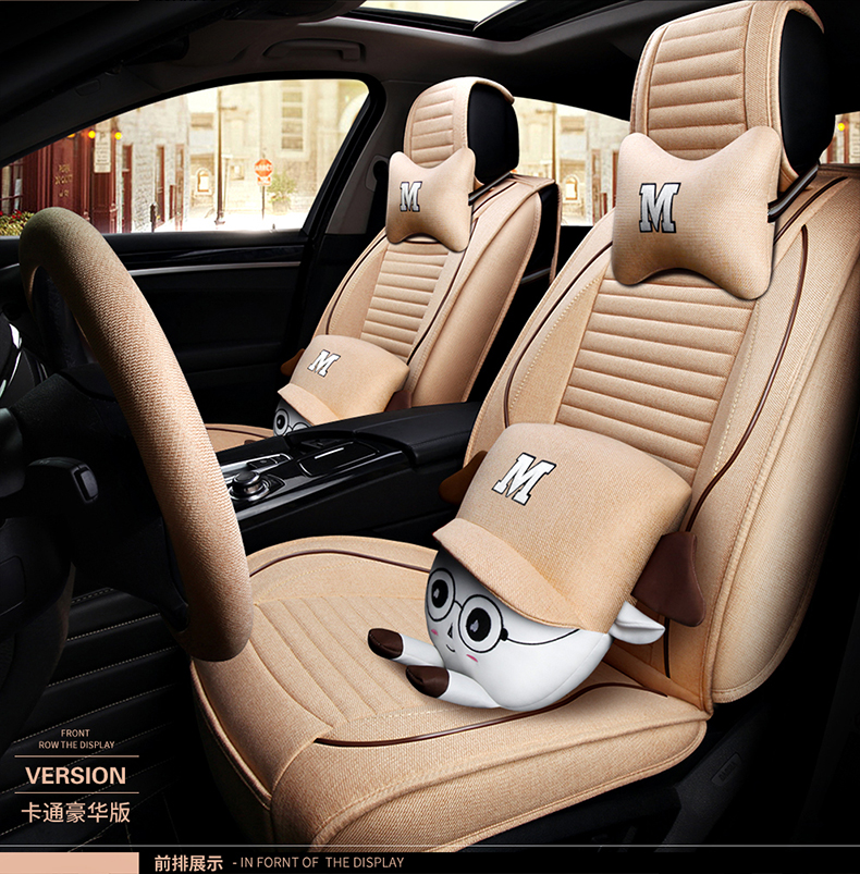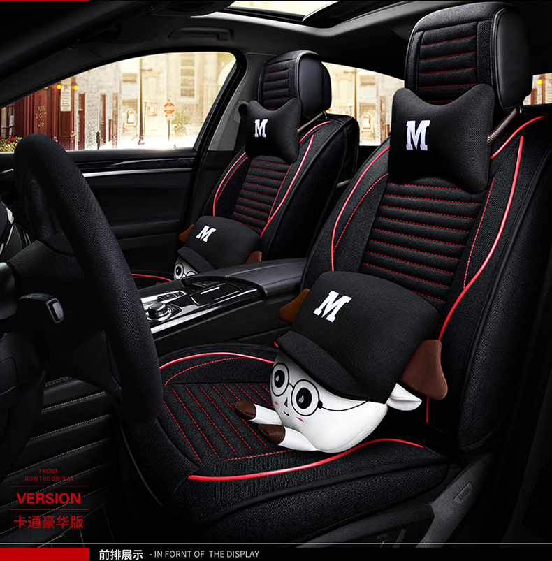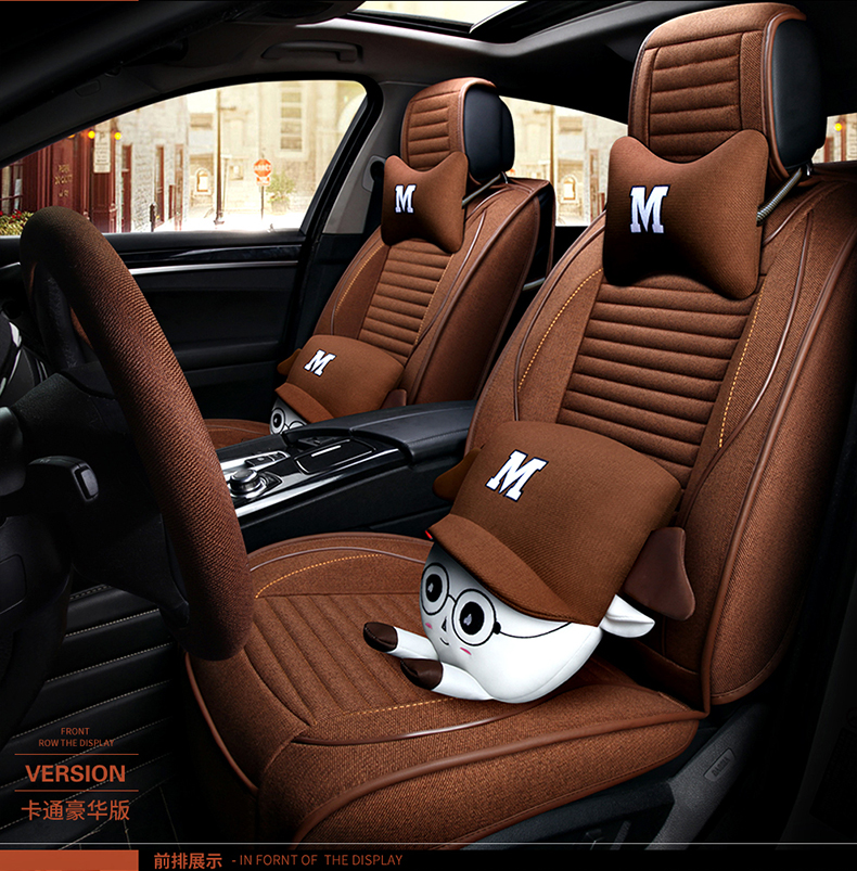 国产 冬季汽车坐垫可爱卡通大众新老款宝来朗逸亚麻全包围座套四季通用
