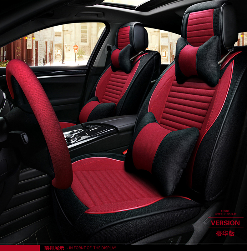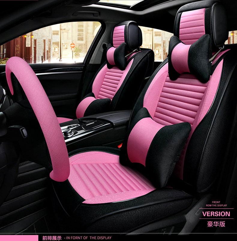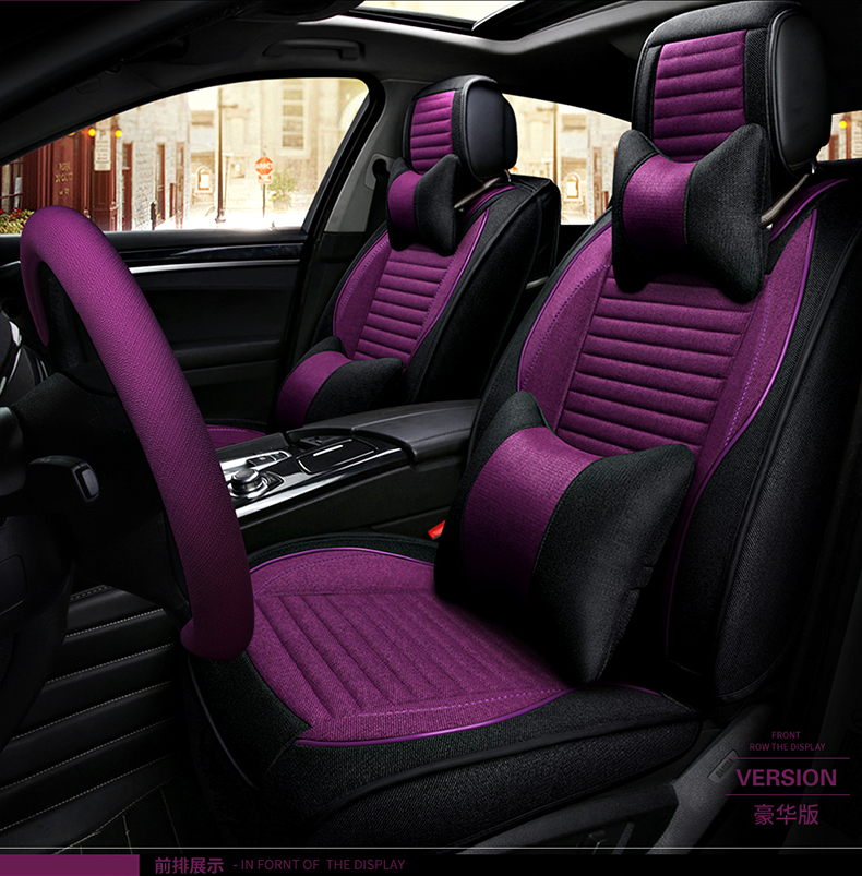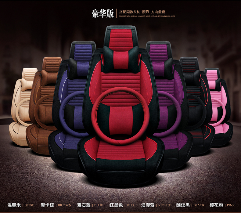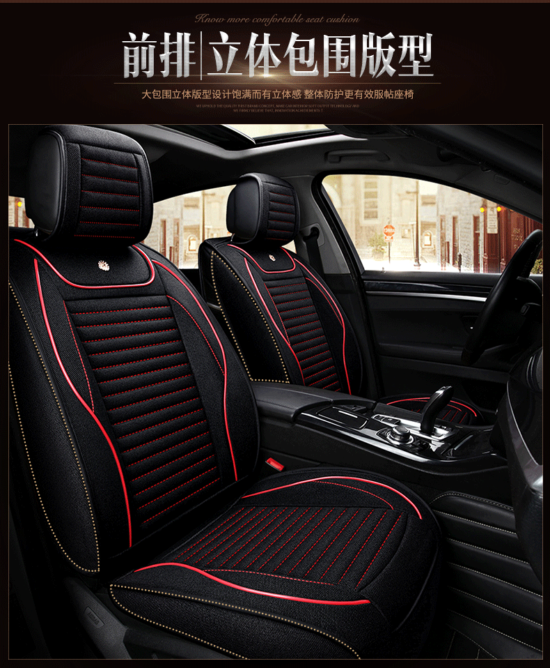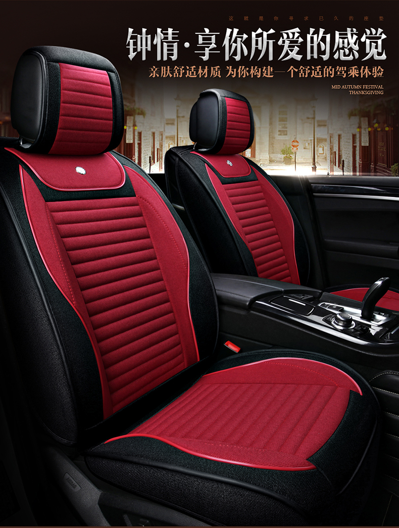 国产 冬季汽车坐垫可爱卡通大众新老款宝来朗逸亚麻全包围座套四季通用