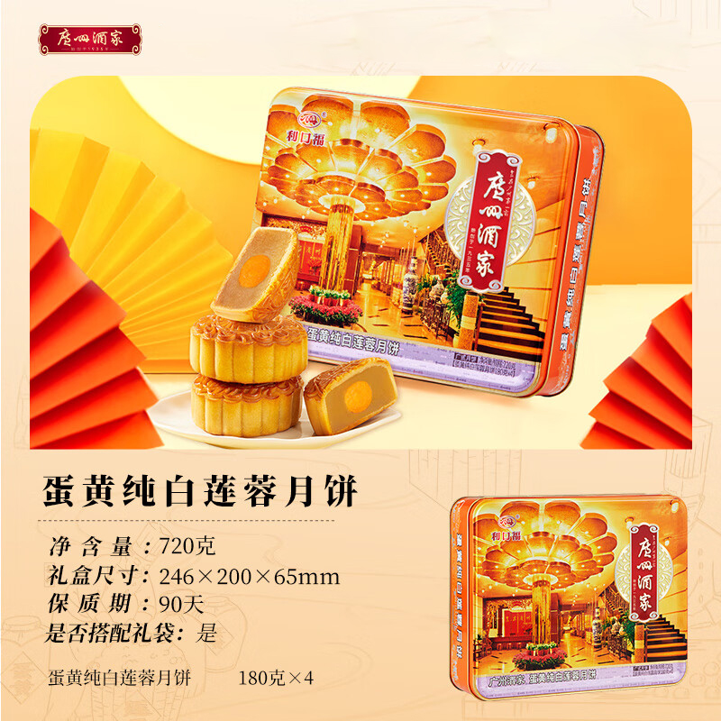 商品名称:广州酒家 蛋黄纯白莲蓉月饼720g 单位:盒
