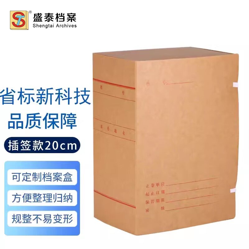 商品名称:盛泰档案(ST)广东省标准新科技档案盒牛皮纸A4纸质基建工程项目资料盒事业单位无酸纸整理盒 20cm新科技档案盒10个 单位:组