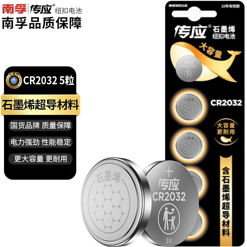 商品名称:传应 石墨烯CR2032纽扣电池5粒3V 单位:组