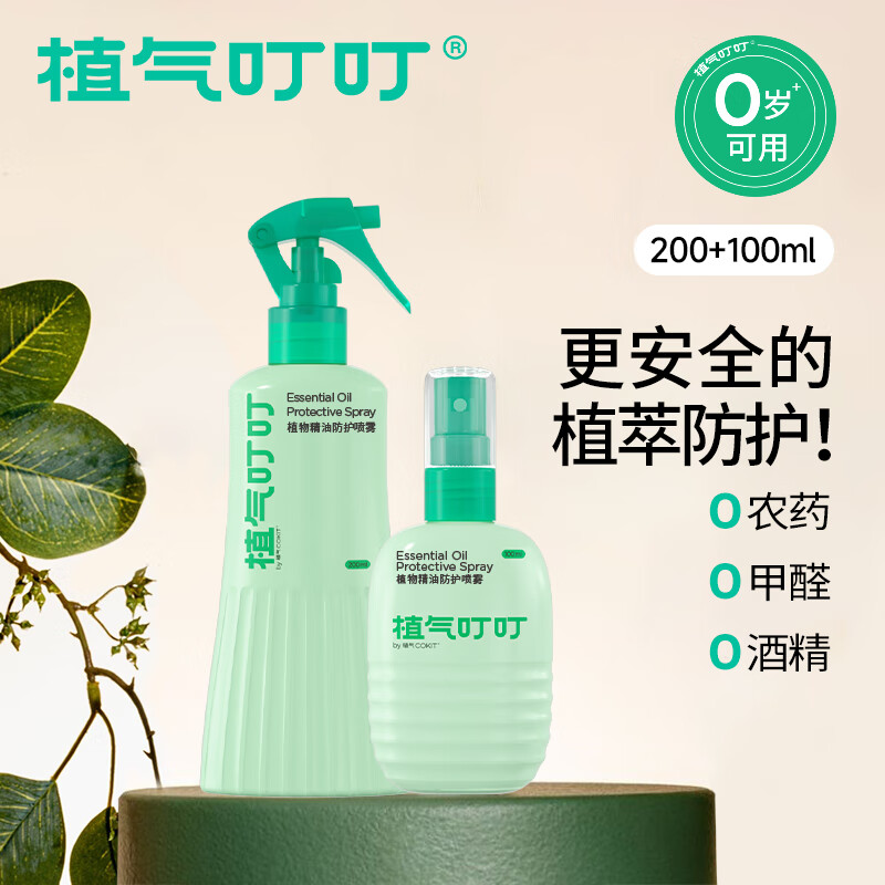 商品名称:植气叮叮无毒驱蚊喷雾专用防蚊虫叮咬精油防护喷雾200ML+100ML 单位:组