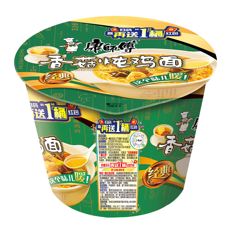 商品名称:康师傅 方便面 经典香菇炖鸡桶面106g*12 泡面整箱 单位:箱