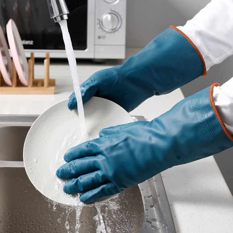商品名称:美丽雅(MARYYA)加绒手套 家用防护厚绒双层保暖洗碗洗衣服家务防水护手套男女 双层保暖手套 1双 均码 单位:双