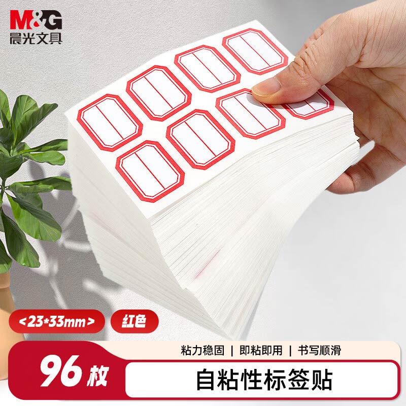 晨光(M&G) 23*33mm/96枚红自粘不干胶标签贴纸便利贴口取纸价格名字姓名贴YT-68办公用品 单位:包