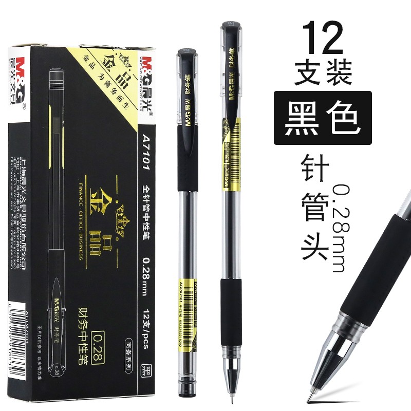 商品名称:晨光(MG)0.28mm中性笔会计办公财务考试商务水笔可替换芯黑色签字笔 0.28mm丨12支 单位:盒