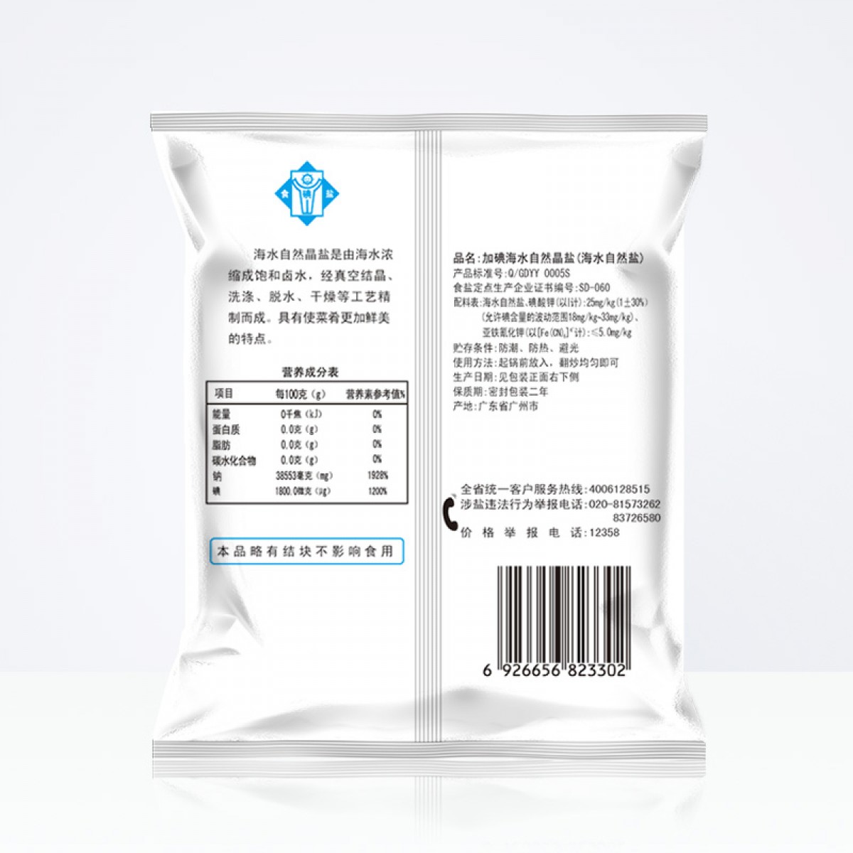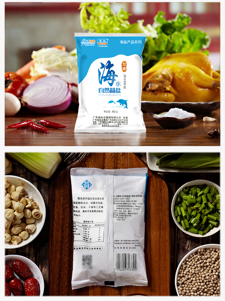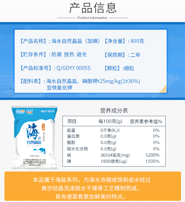 商品名称:粤盐牌 海水自然晶细盐400g