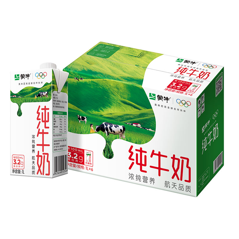 商品名称:蒙牛 全脂纯牛奶1L*6盒 单位:箱