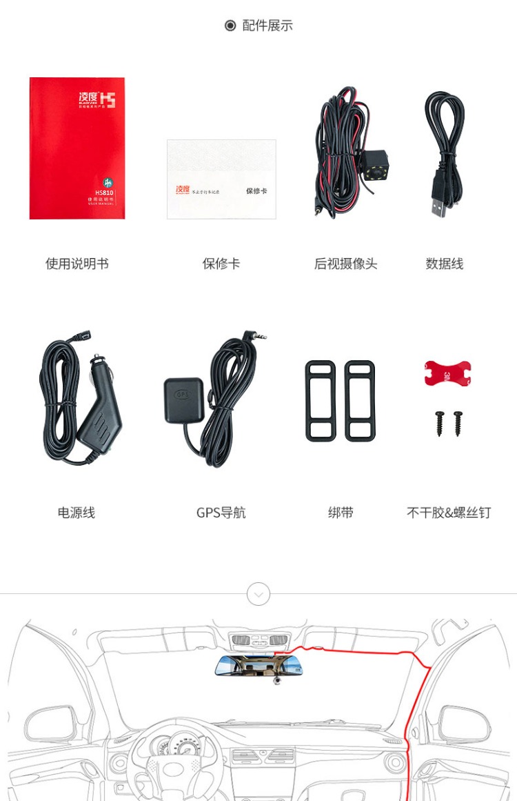 商品名称:凌度 行车记录仪双镜头高清夜视360度全景导航电子狗倒车影像一体