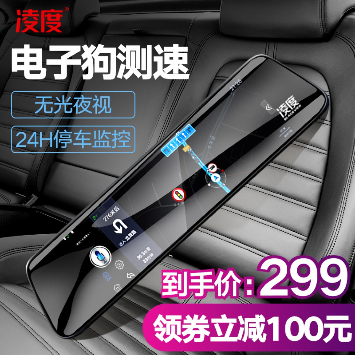 凌度 汽车行车记录仪双镜头高清夜视全景电子狗倒车影像一体机