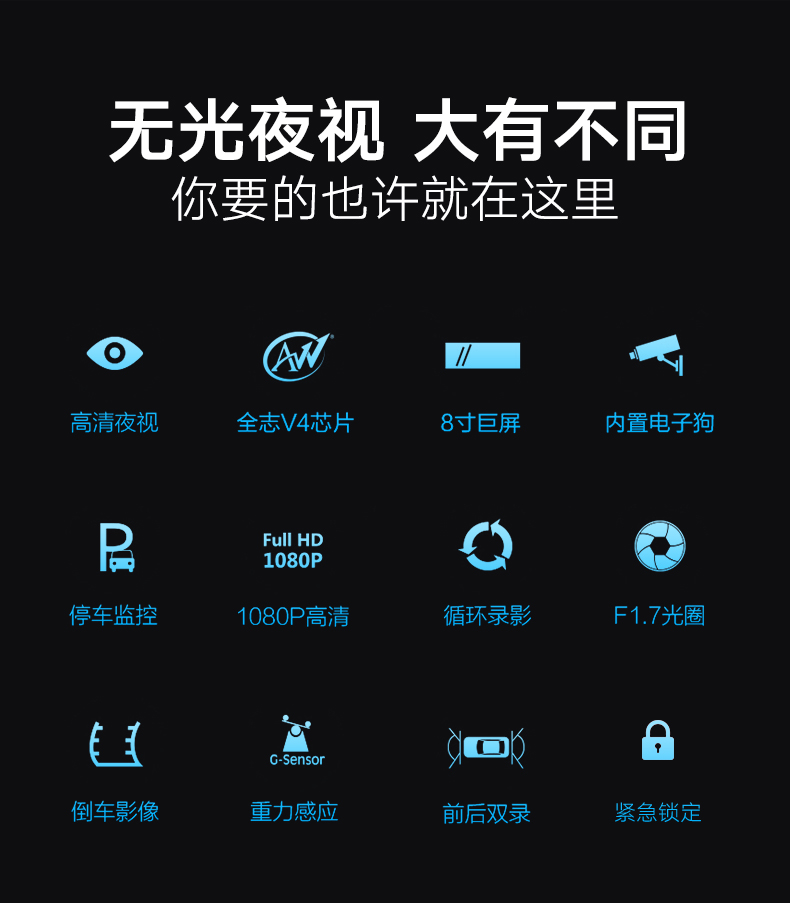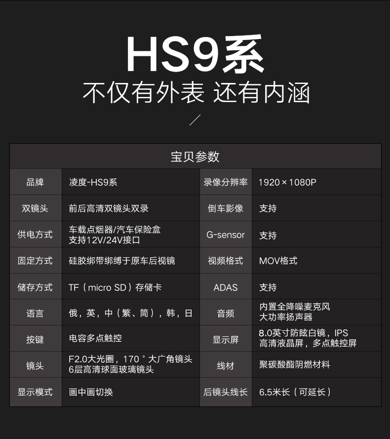 商品名称:凌度 汽车行车记录仪双镜头高清夜视全景电子狗倒车影像一体机