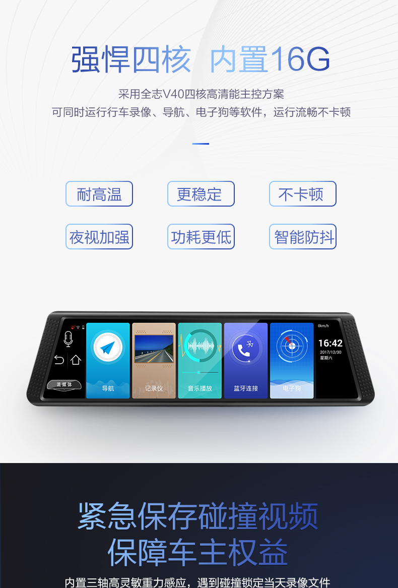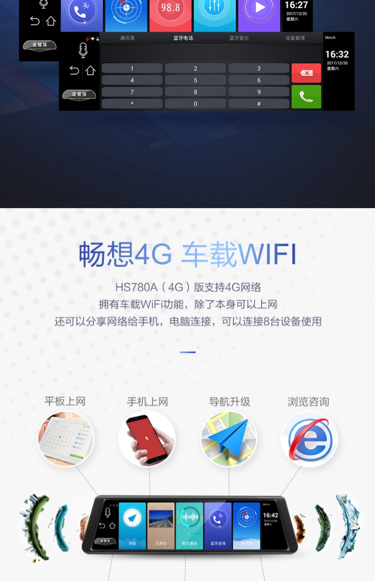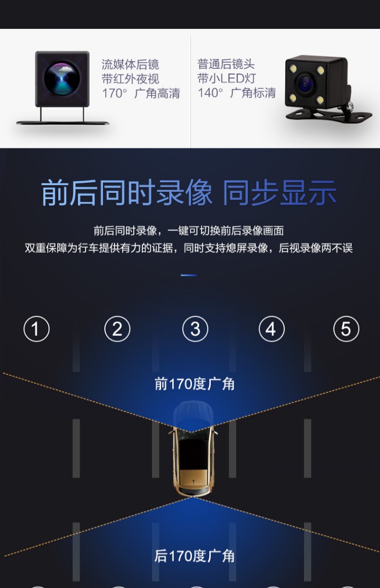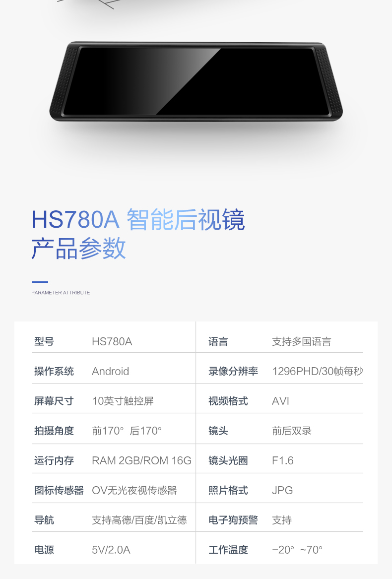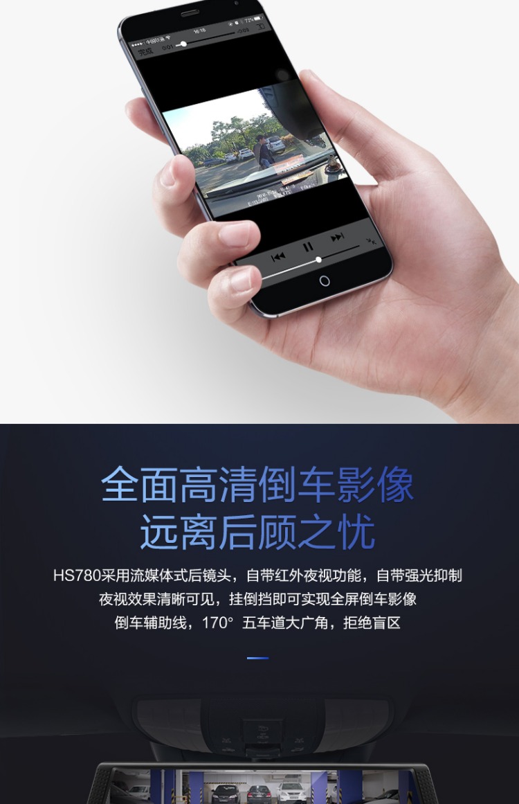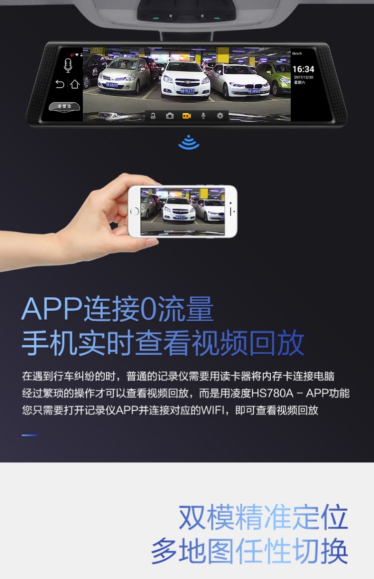 商品名称:凌度 HS780A流媒体汽车电子狗行车记录仪双镜头高清夜视全景一体机