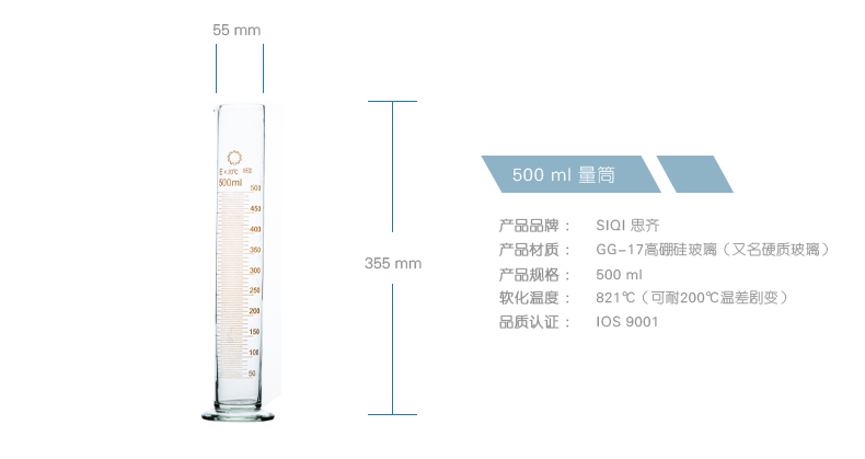 商品名称:思齐 玻璃量筒 透明 清晰刻度 实验室器材量杯 高硼硅玻璃耐高温 500ml
