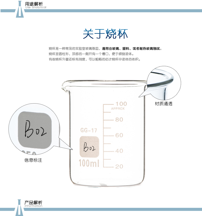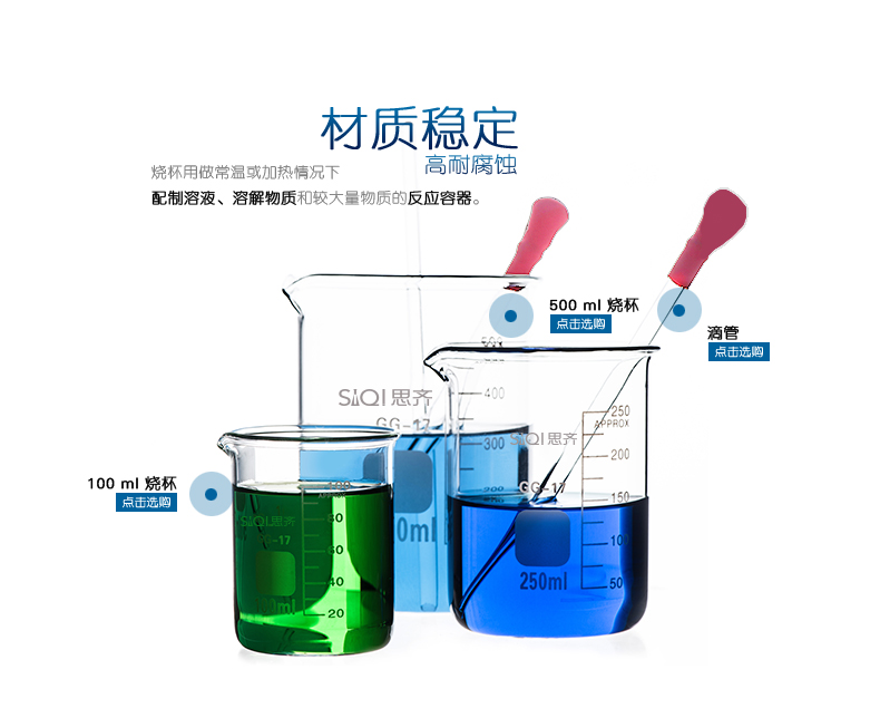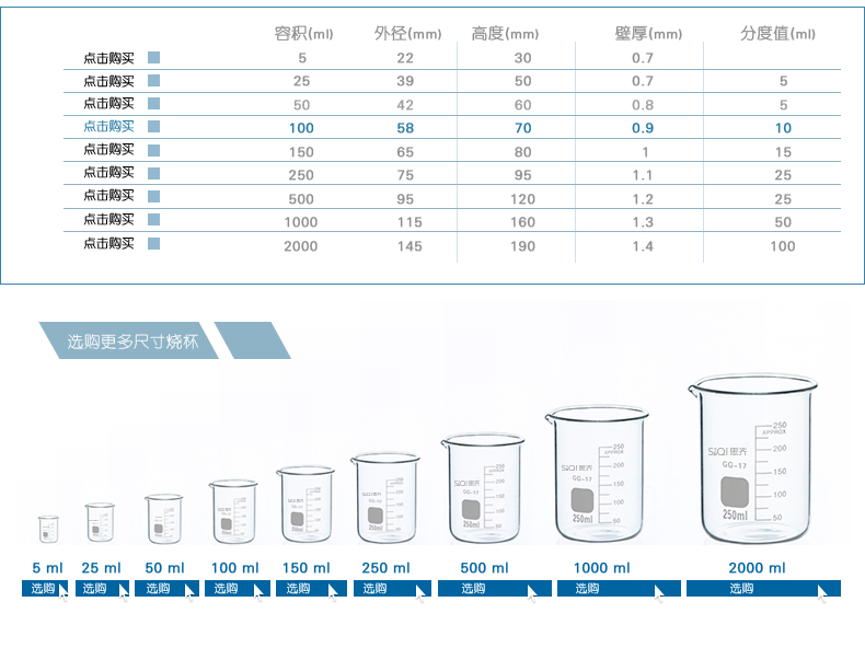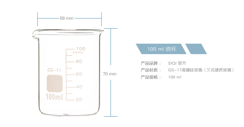 商品名称:思齐 玻璃烧杯 耐高温 刻度杯 加厚 实验器材 玻璃仪器 100ml