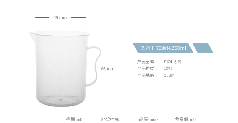 商品名称:思齐 塑料烧杯 带把式烧杯 实验室用品 250ml