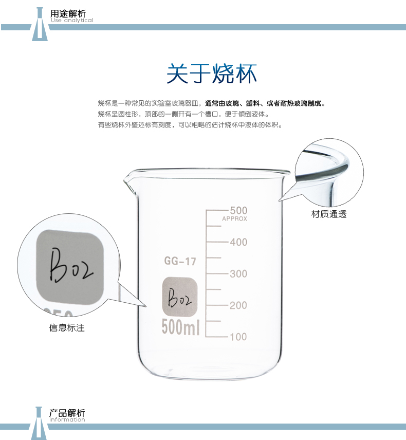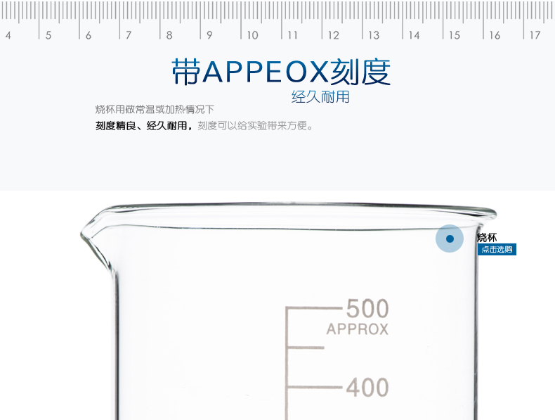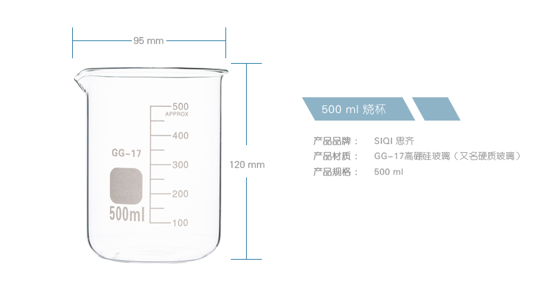 商品名称:思齐 玻璃烧杯 耐高温 刻度杯 加厚玻璃仪器 实验器材 500ml