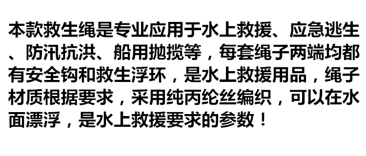 商品名称:国产 30米水上救生浮索救生绳漂浮绳反光救生绳发光导向绳引导