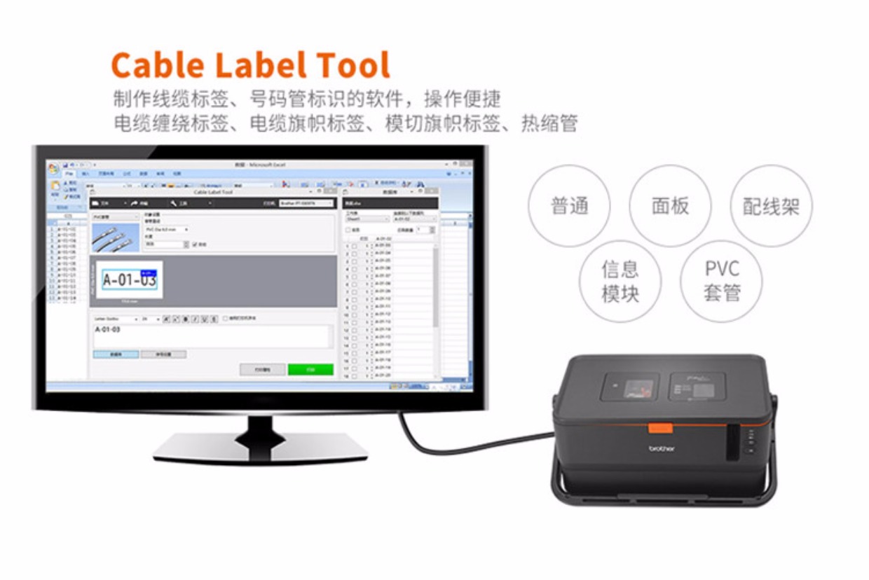 兄弟/Brother 号码管标签机pvc套管打印机线缆印字打号机 PT-E800TK