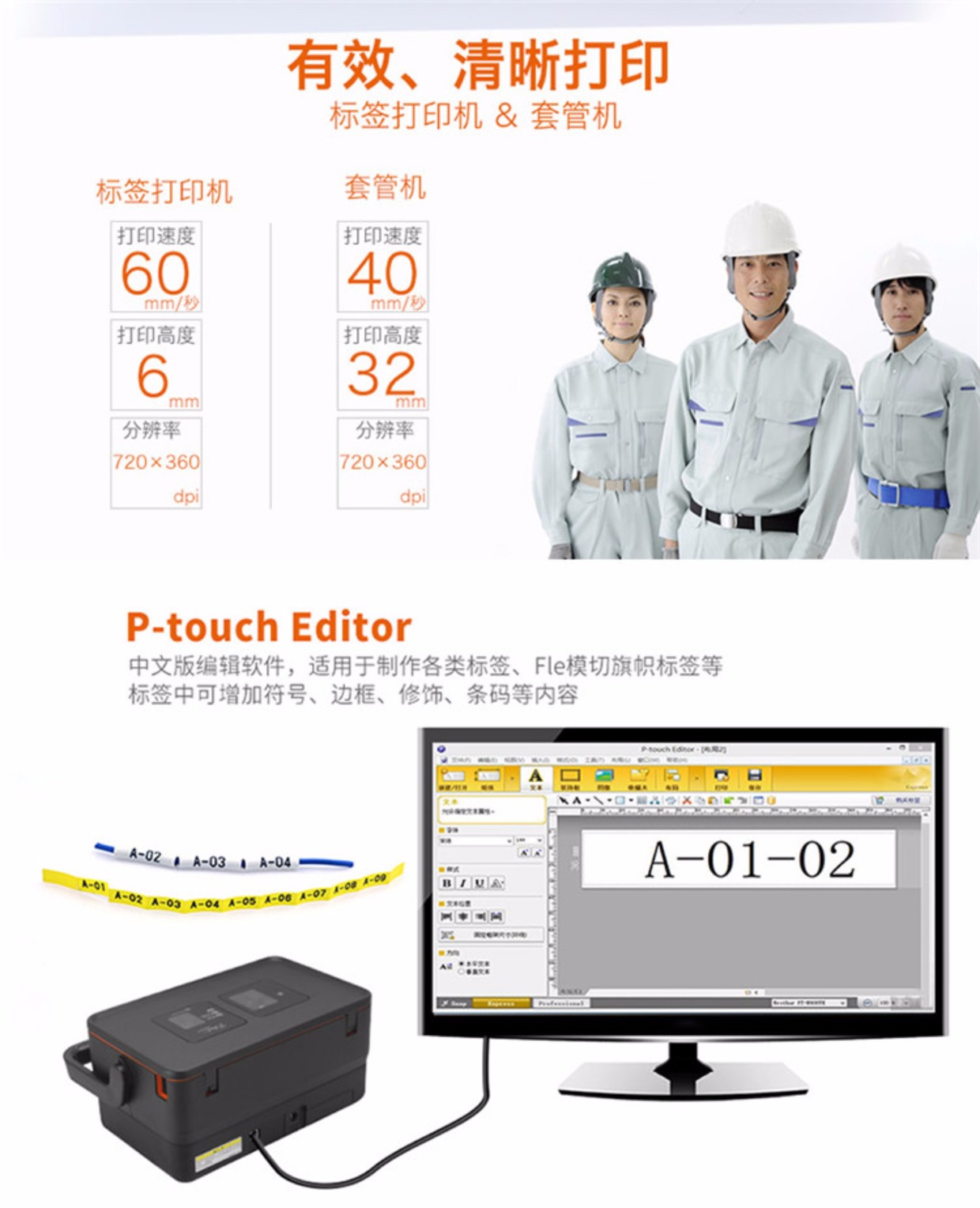 商品名称:兄弟/Brother 号码管标签机pvc套管打印机线缆印字打号机 PT-E800TK
