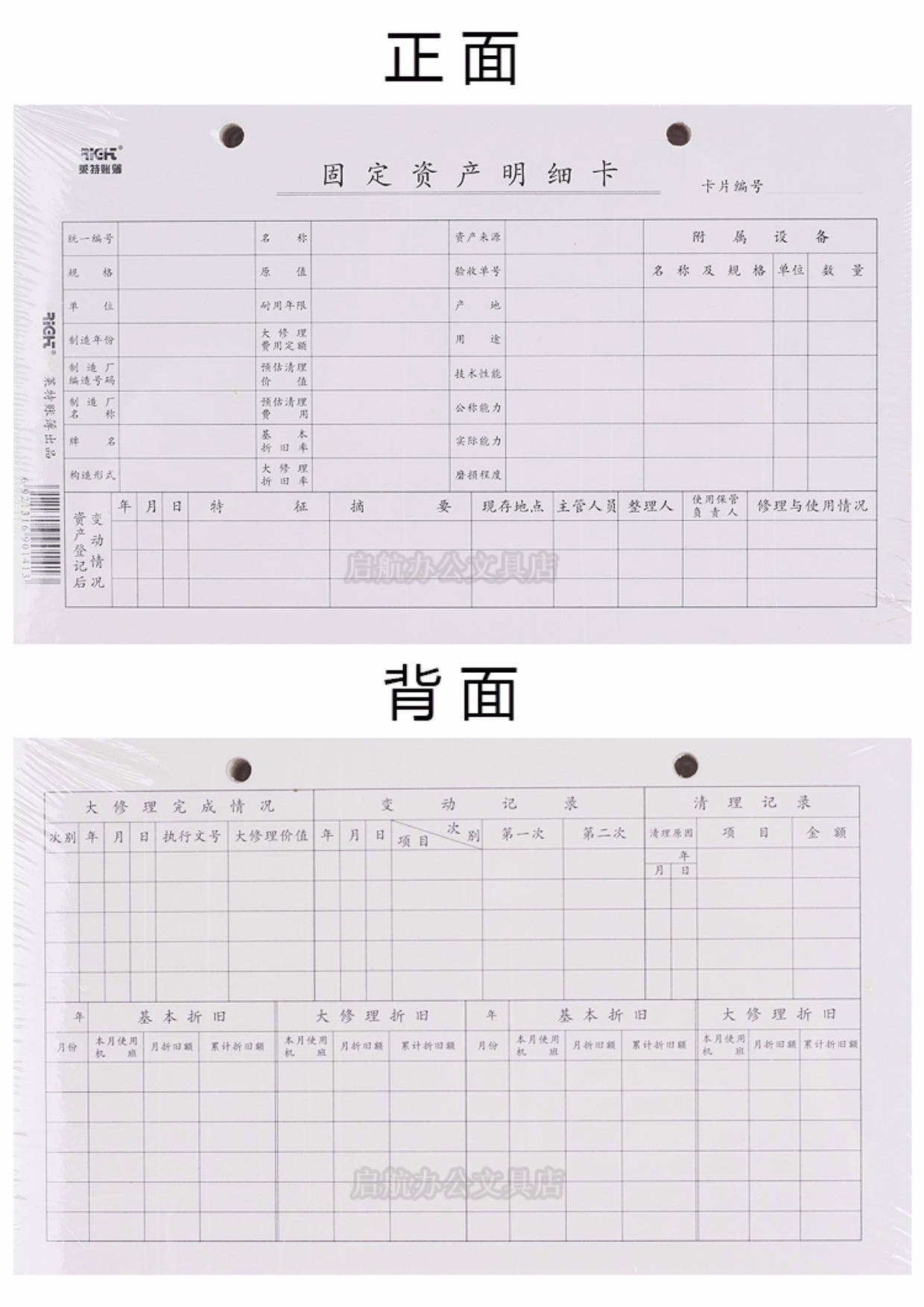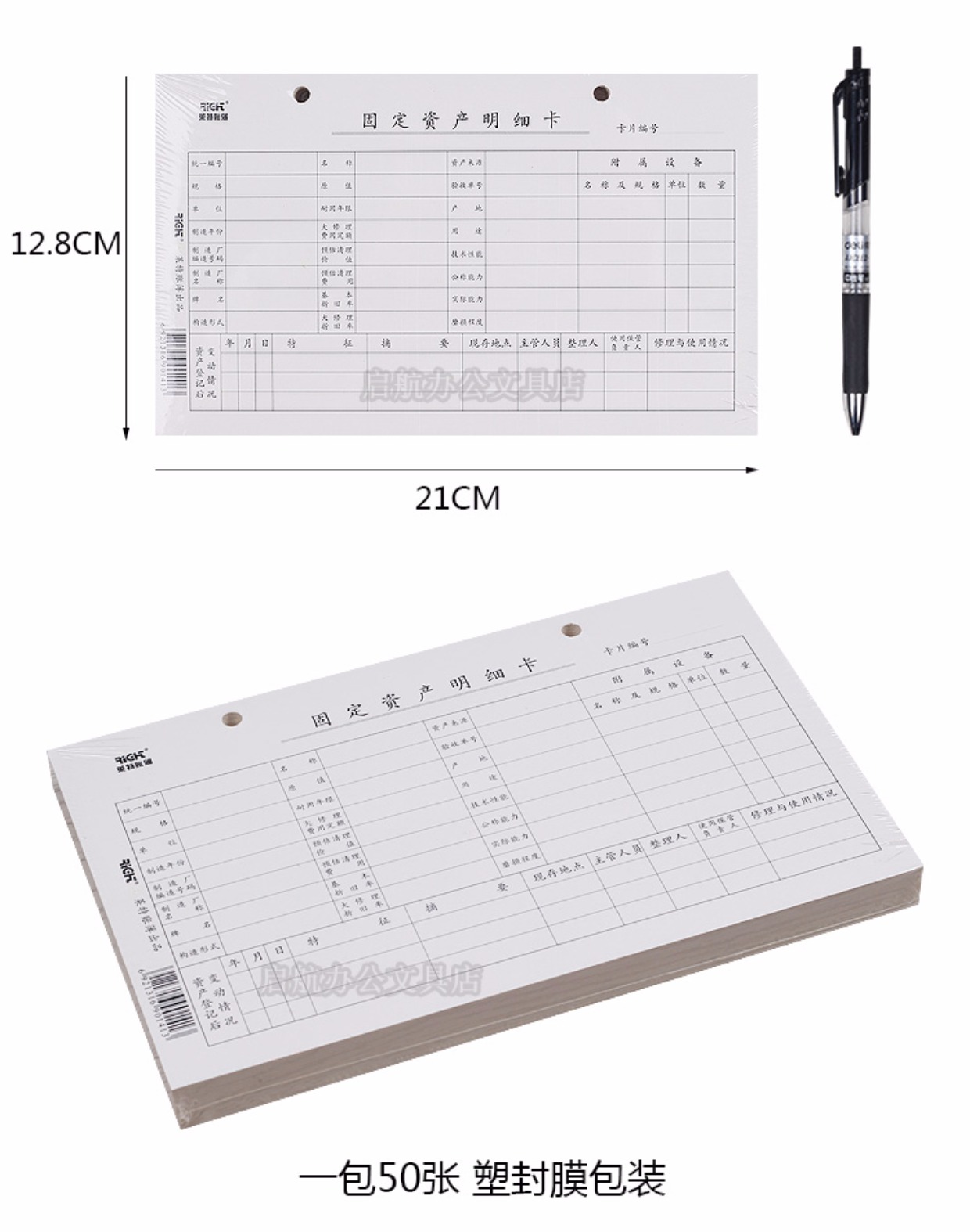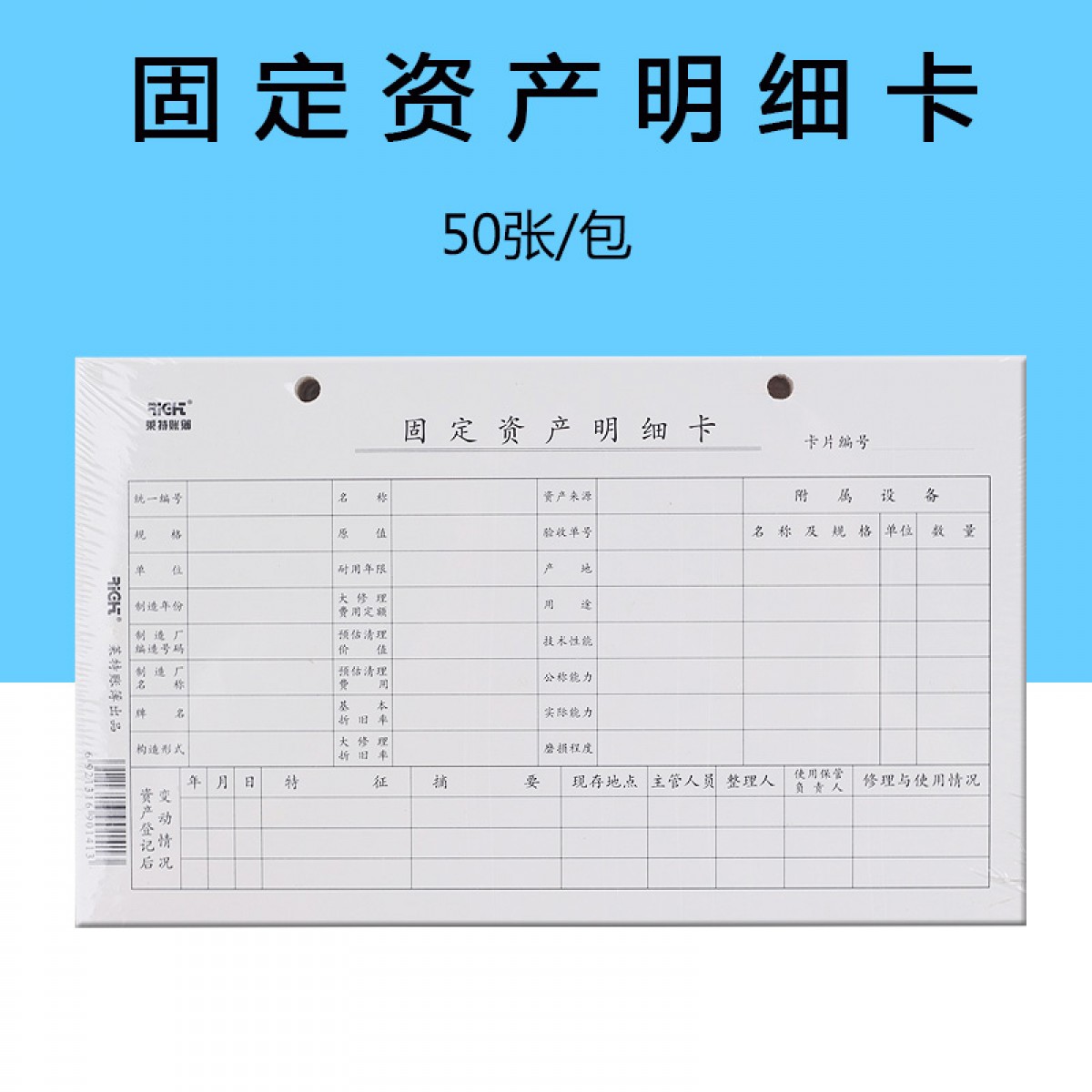 商品名称:国产 固定资产明细卡 固定资产登记卡片 财务用品 办公用品 一包50张