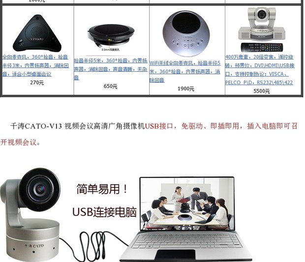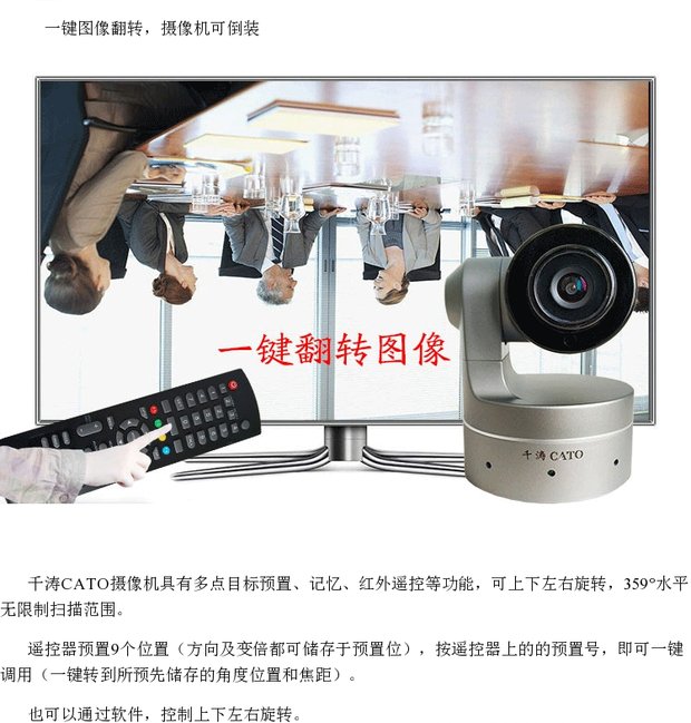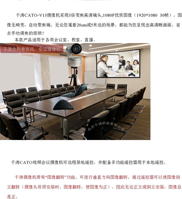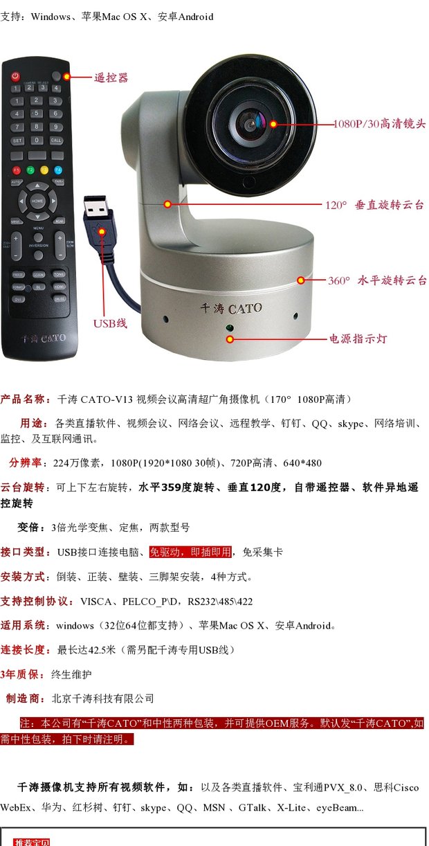 商品名称:千涛 视频会议摄像机1080P高清会议摄像头USB广角免驱3倍光学变焦遥控旋转会议摄像头台式可吊装摄像头 V13