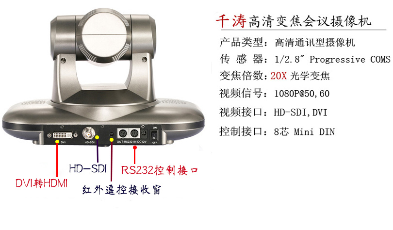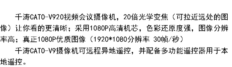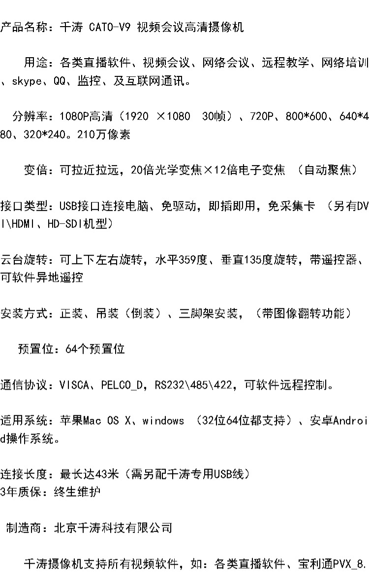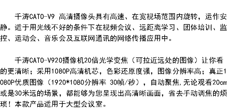 商品名称:千涛 视频会议摄像机20倍变焦1080P高清USB视频会议摄像机云台遥控 CATO-V9