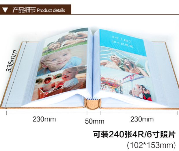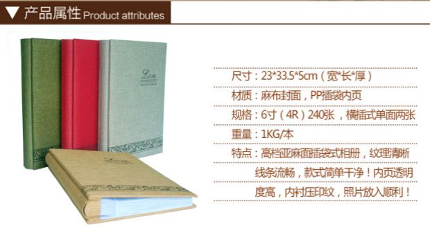 商品名称:国产 巧印像 亚麻布面插袋PP相册6寸240张插页式内页影集