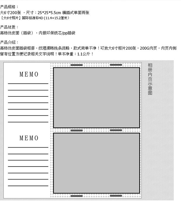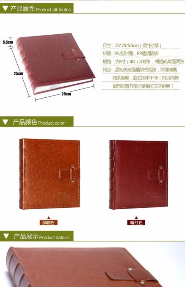 商品名称:国产 皮面带扣影集插页式相册放照片200张4D大6寸精品家庭相簿