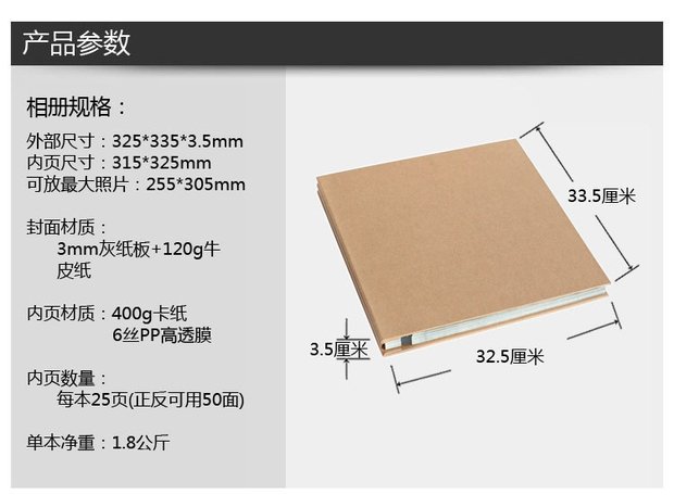 商品名称:国产 巧印像 牛皮纸面手工DIY相册 大号粘贴式覆膜相簿影集
