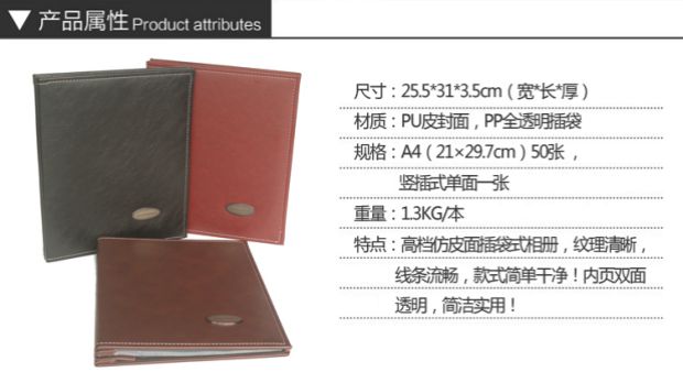 商品名称:国产 简约商用皮革面相册50张A4插页式影集 作品剪贴收集册活页菜谱