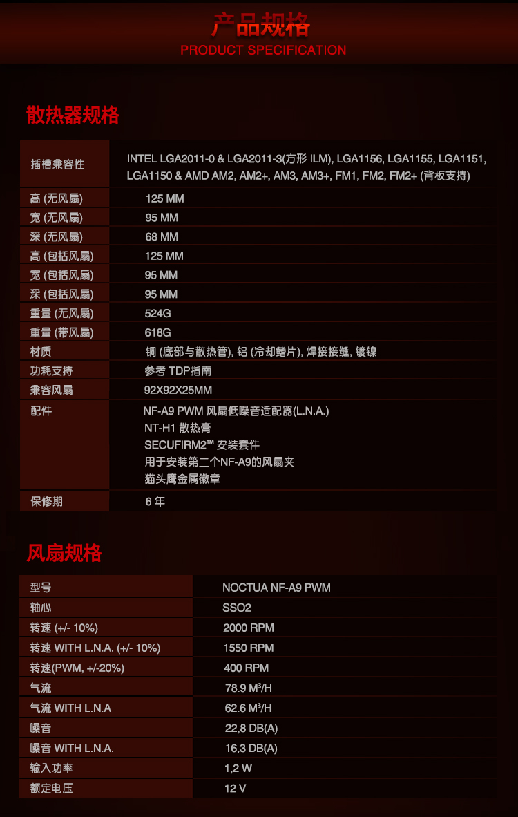 商品名称:猫头鹰 9CM散热器 U9B升级版 兼容梳子内存 NH-U9S
