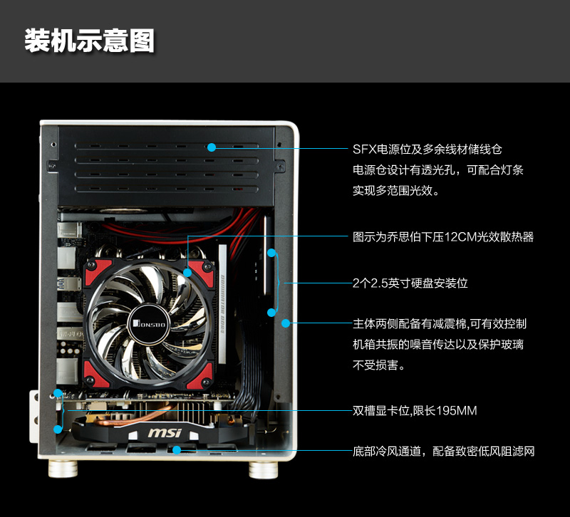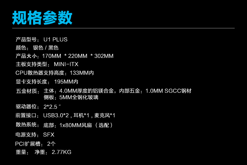 商品名称:乔思伯 ITX mini全铝侧透 小钢炮机箱 U1 plus