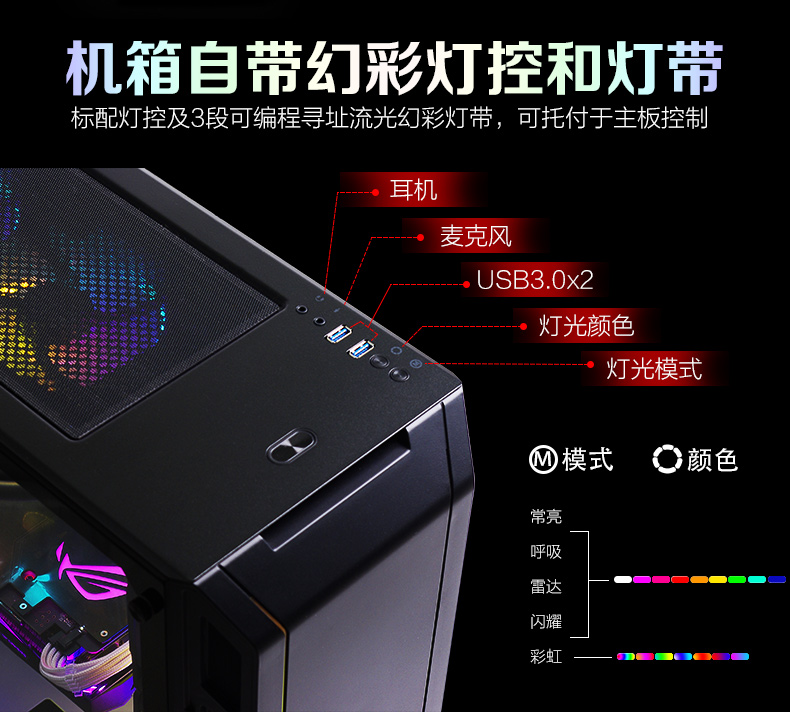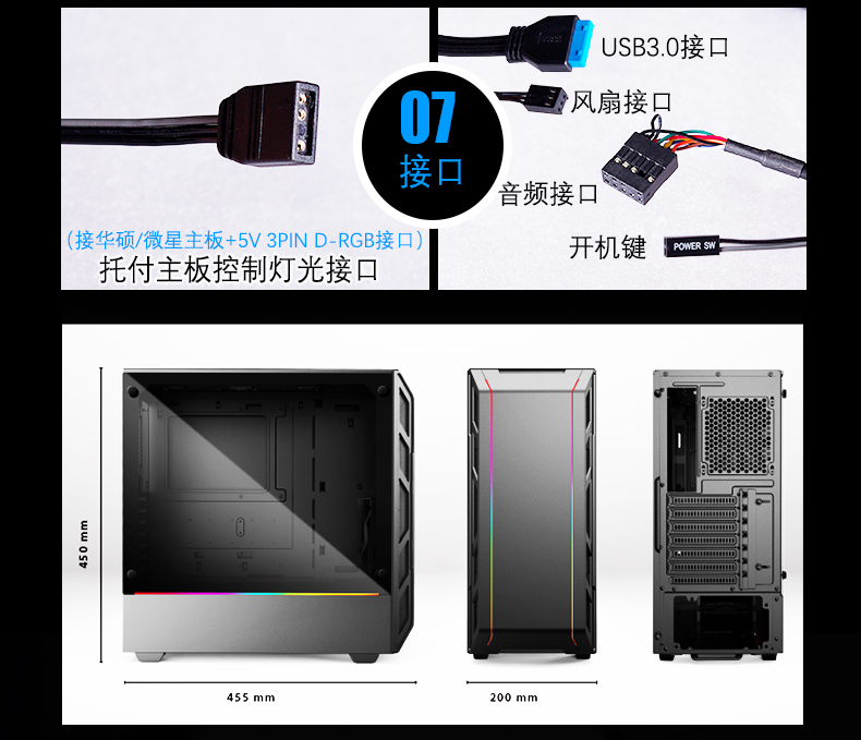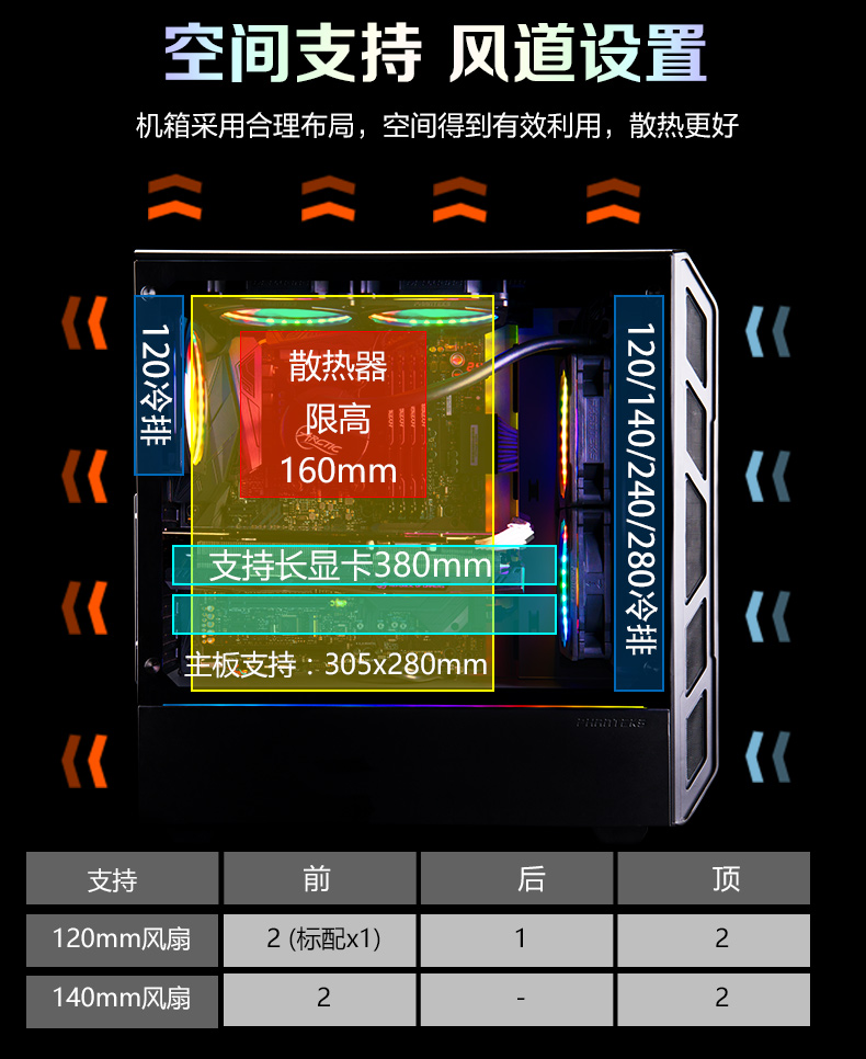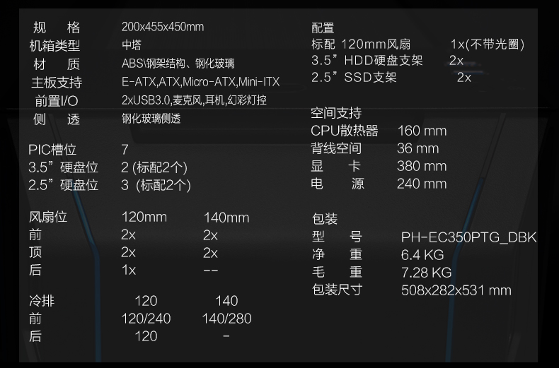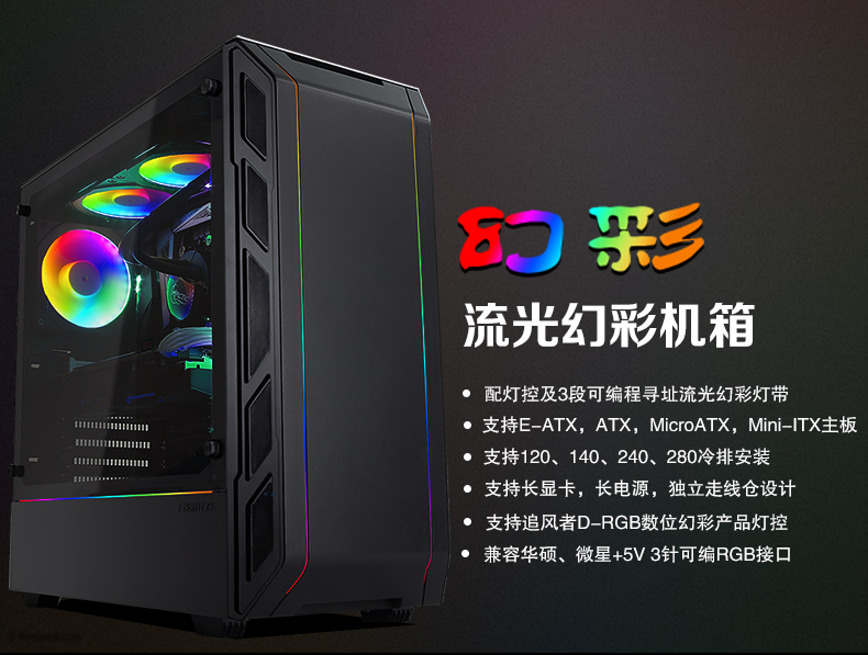 商品名称:追风者 P350X数位流光幻彩钢化玻璃台式 电脑水冷主机箱 PH-EC350PTG