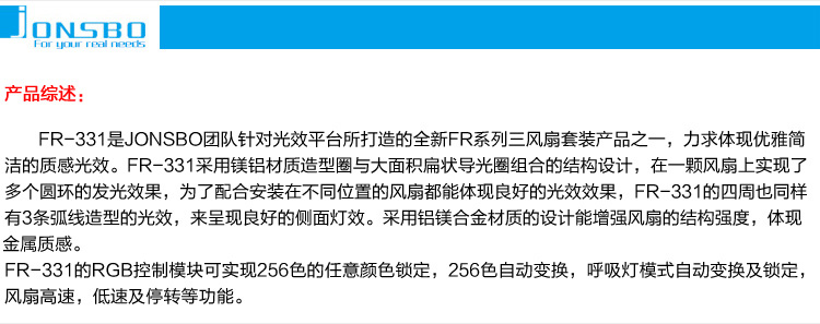 商品名称:乔思伯 风扇RGB套装变色12CM发光风扇支持调速256调色 FR-331