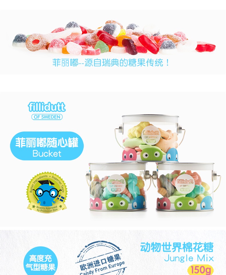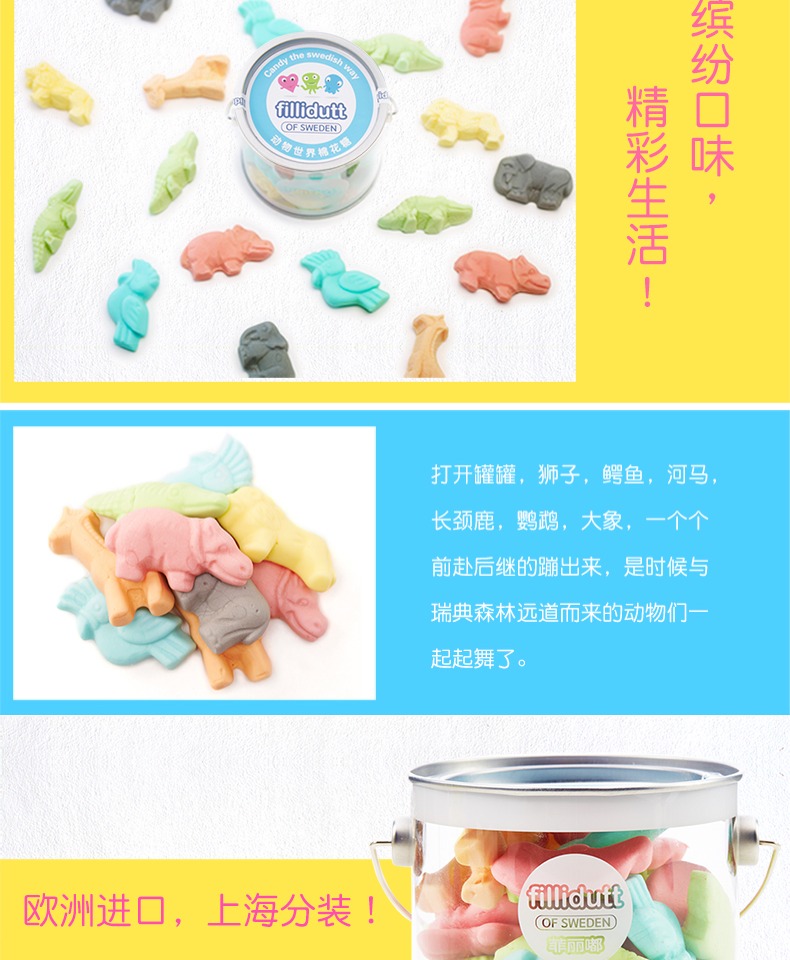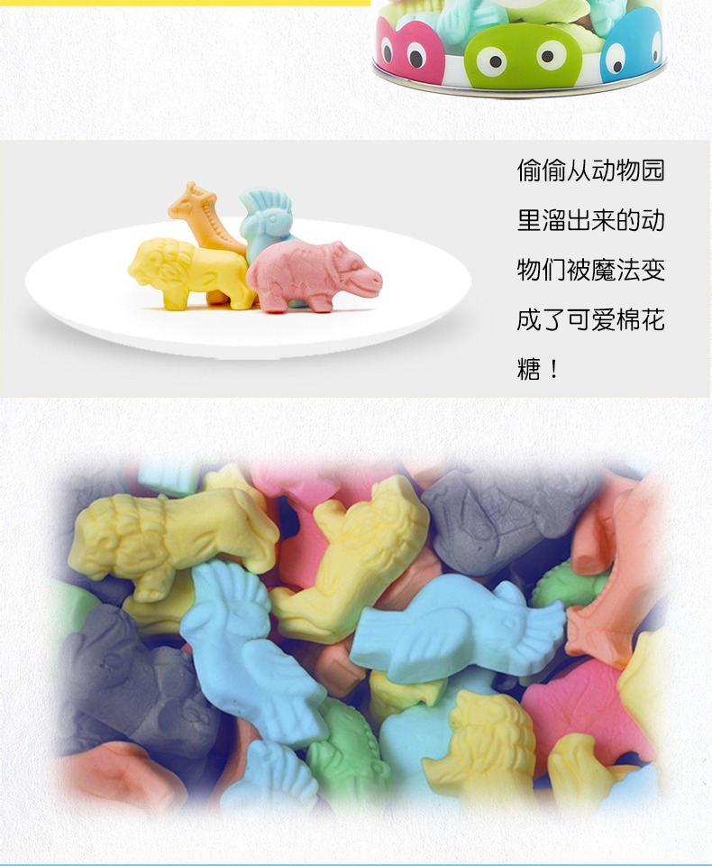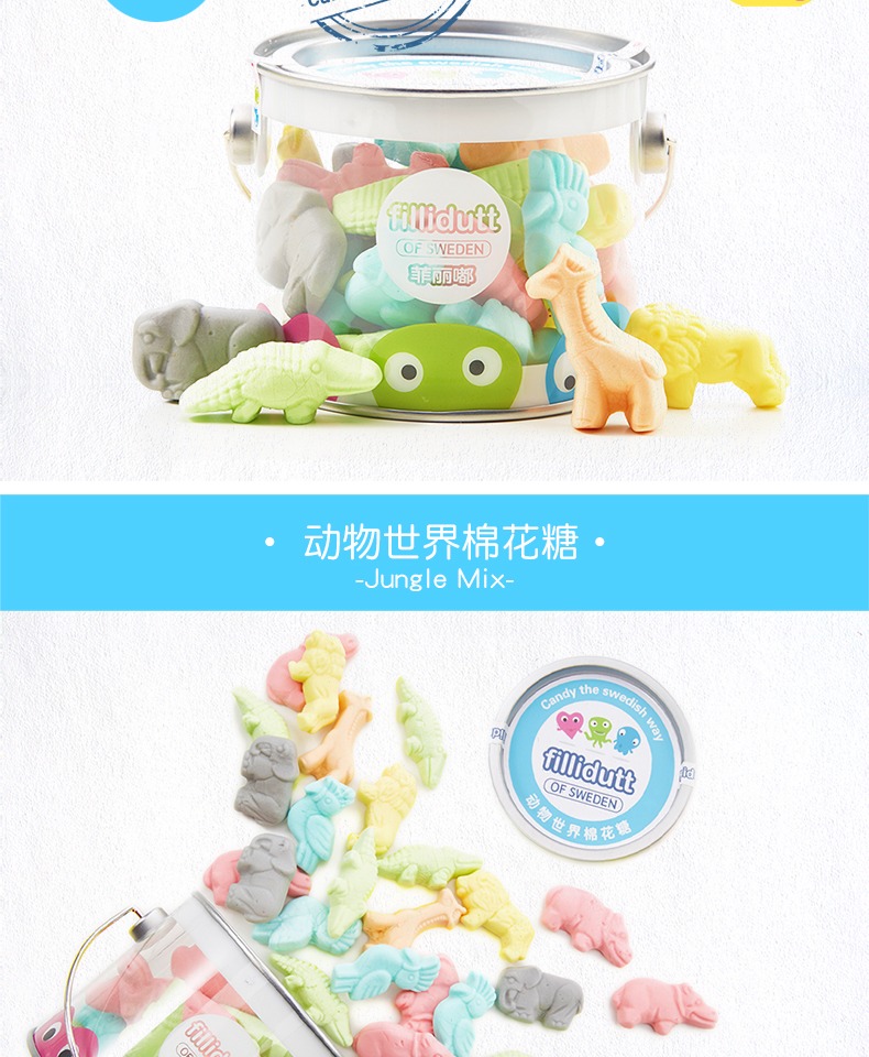 商品名称:fillidutt/菲丽嘟 儿童动物世界棉花糖 罐装棉花糖 儿童糖果礼盒