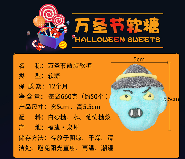 商品名称:国产 糖果 散装南瓜头棉花糖